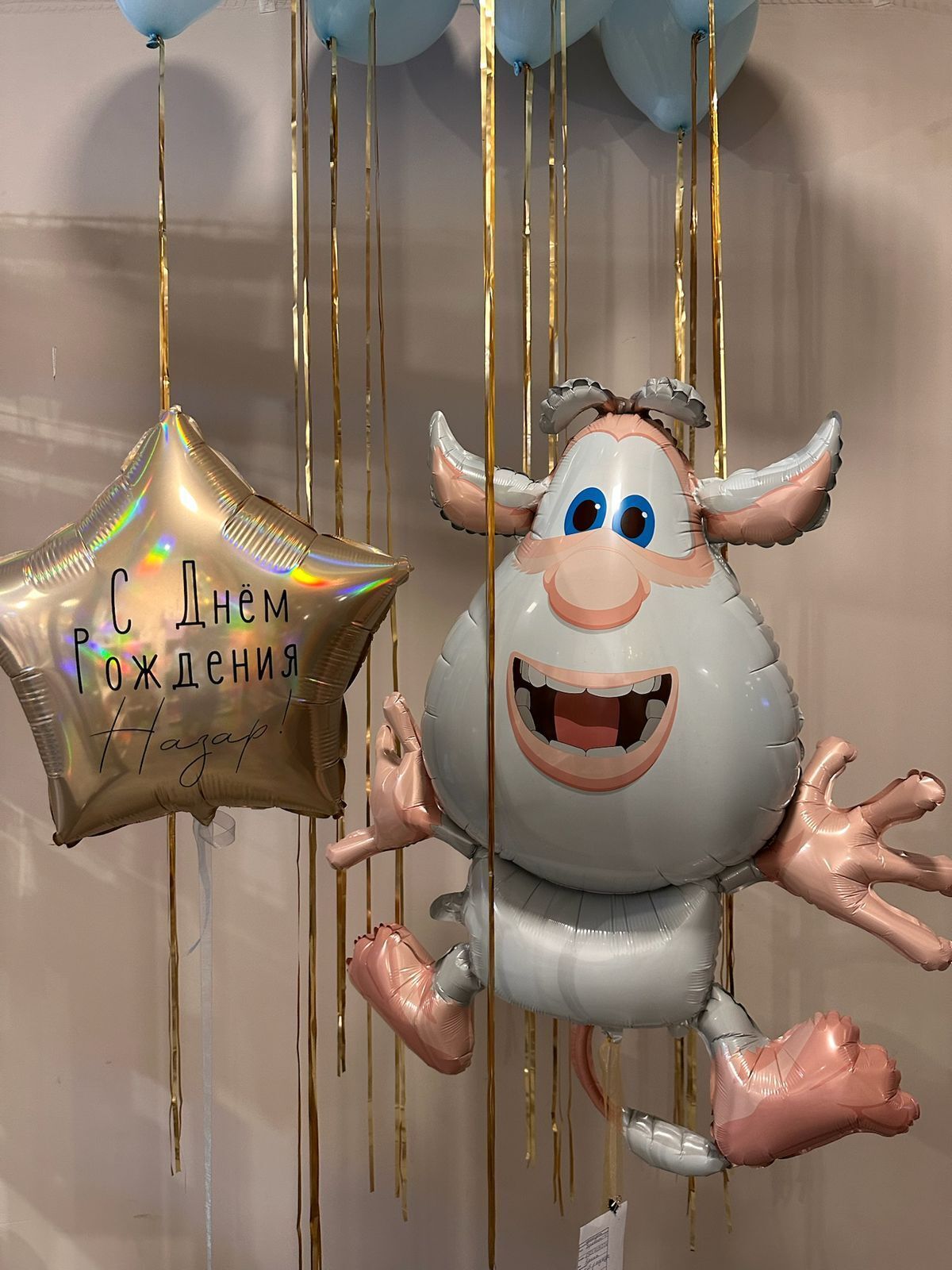 Буба, звездочка с надписью и 10 шаров с дождем