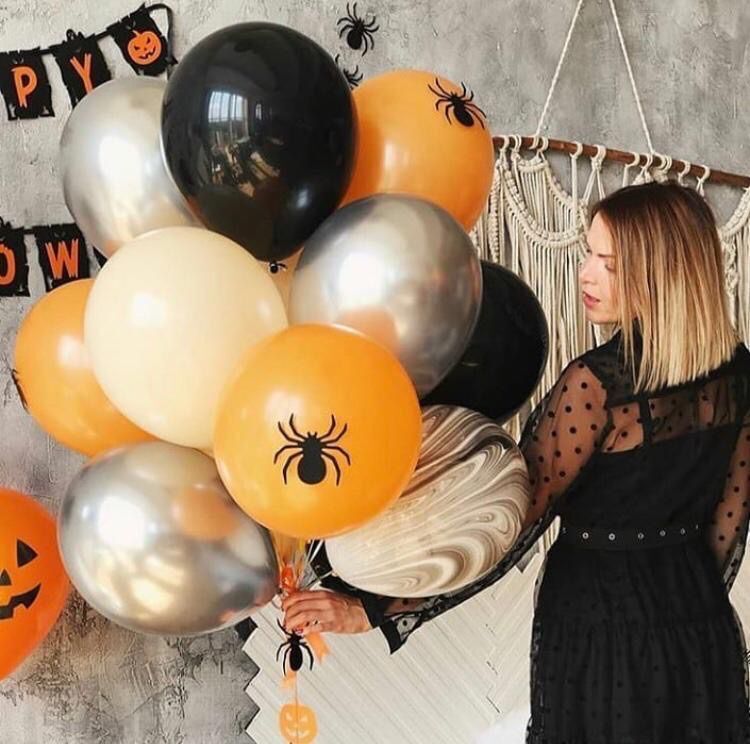 • Фонтан из 12 шаров (2 агата, 3 хром серебро, 7 обычных шаров в гамме оранжевый, черный и белый песок, на 3 шара добавлены наклейки "паук")