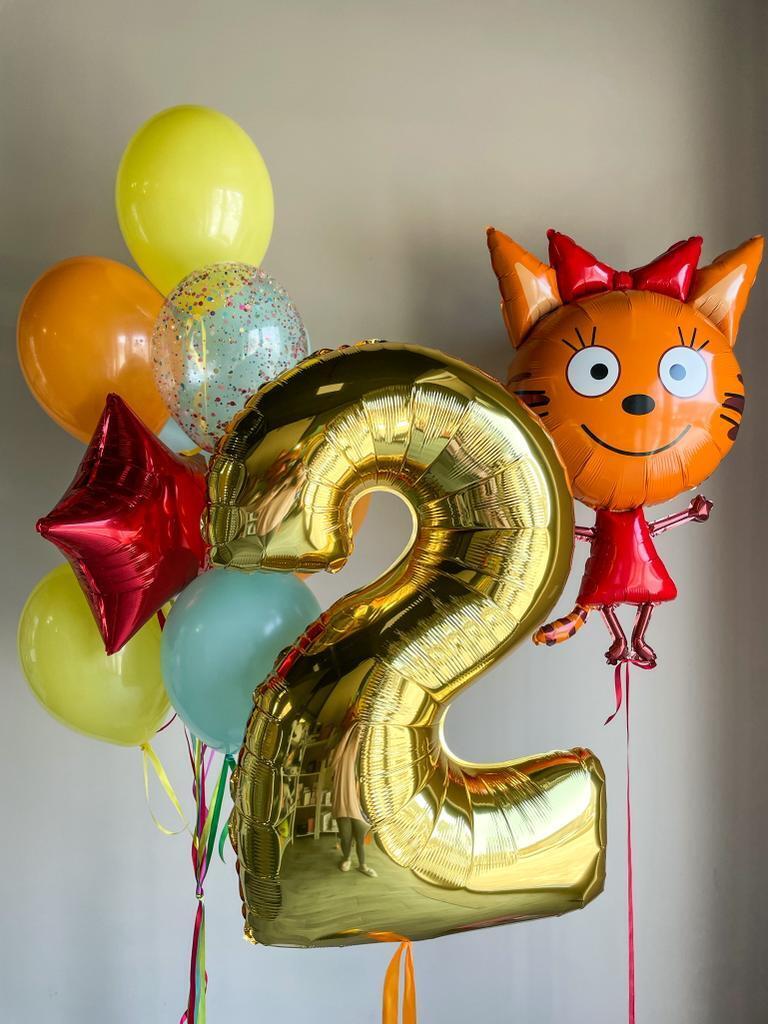 Фонтан из 10 шаров: 2 с конфетти, 1 звезда, 7 обычных