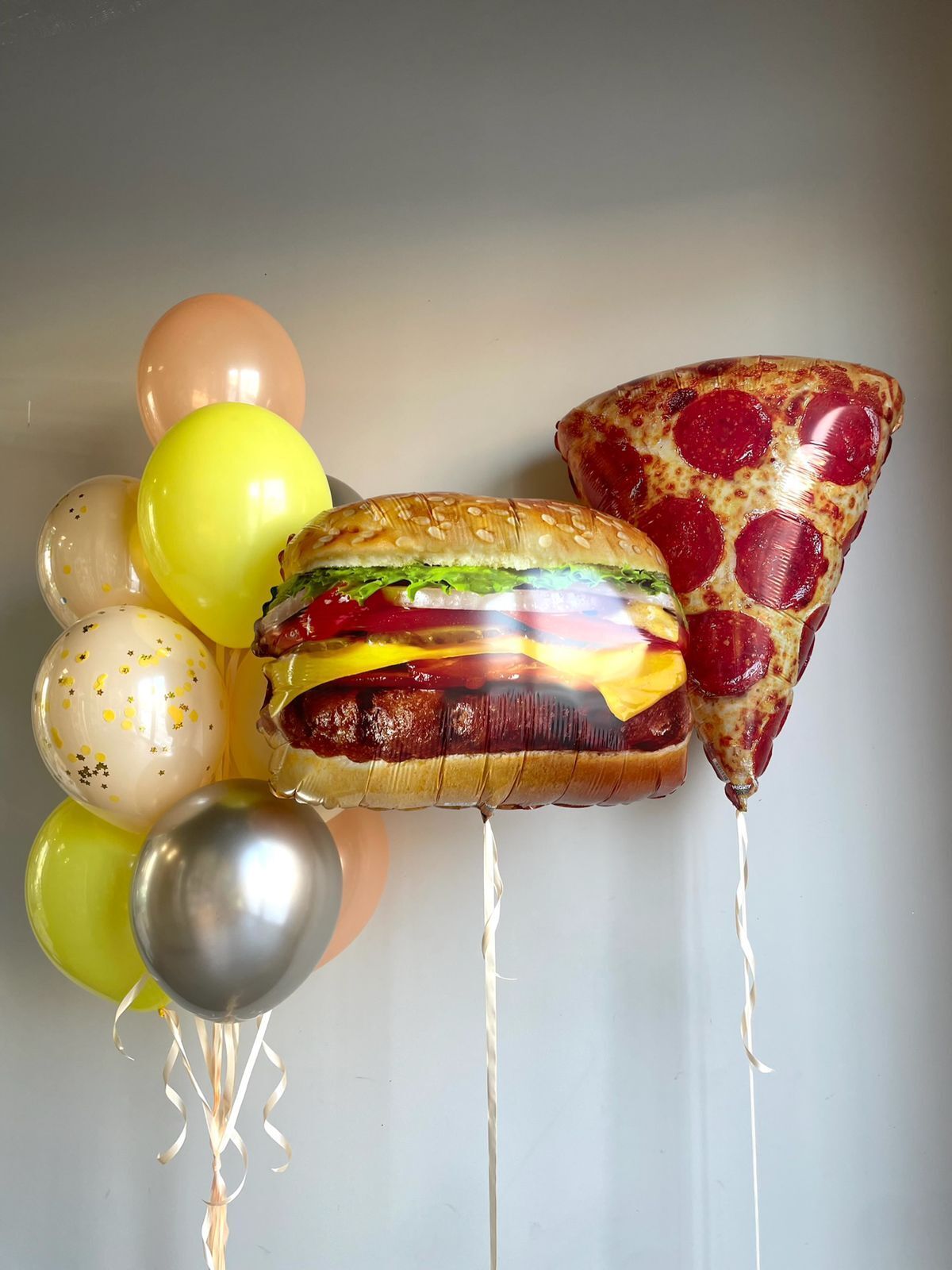 Фонтан из 10 шаров: 2 дабл-стаф с конфетти, 2 хром, 6 обычных
