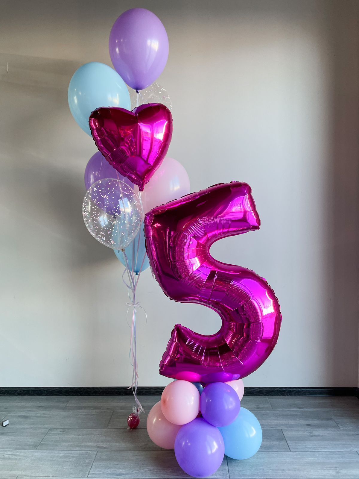 Фонтан 5 обычных, 2 с конфетти, сердце