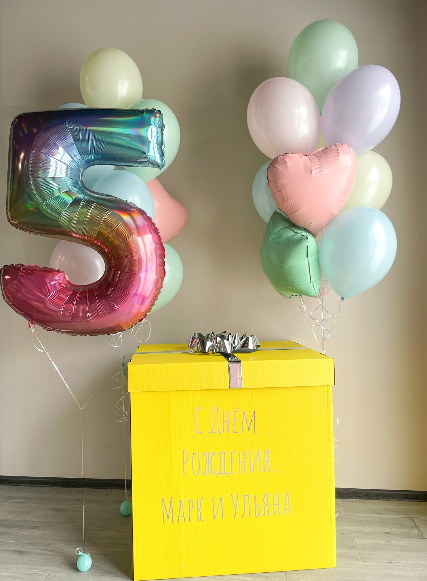 Данный набор возможен с изменением цветовой гаммы, количеством шаров, добавлением индивидуальной надписи)