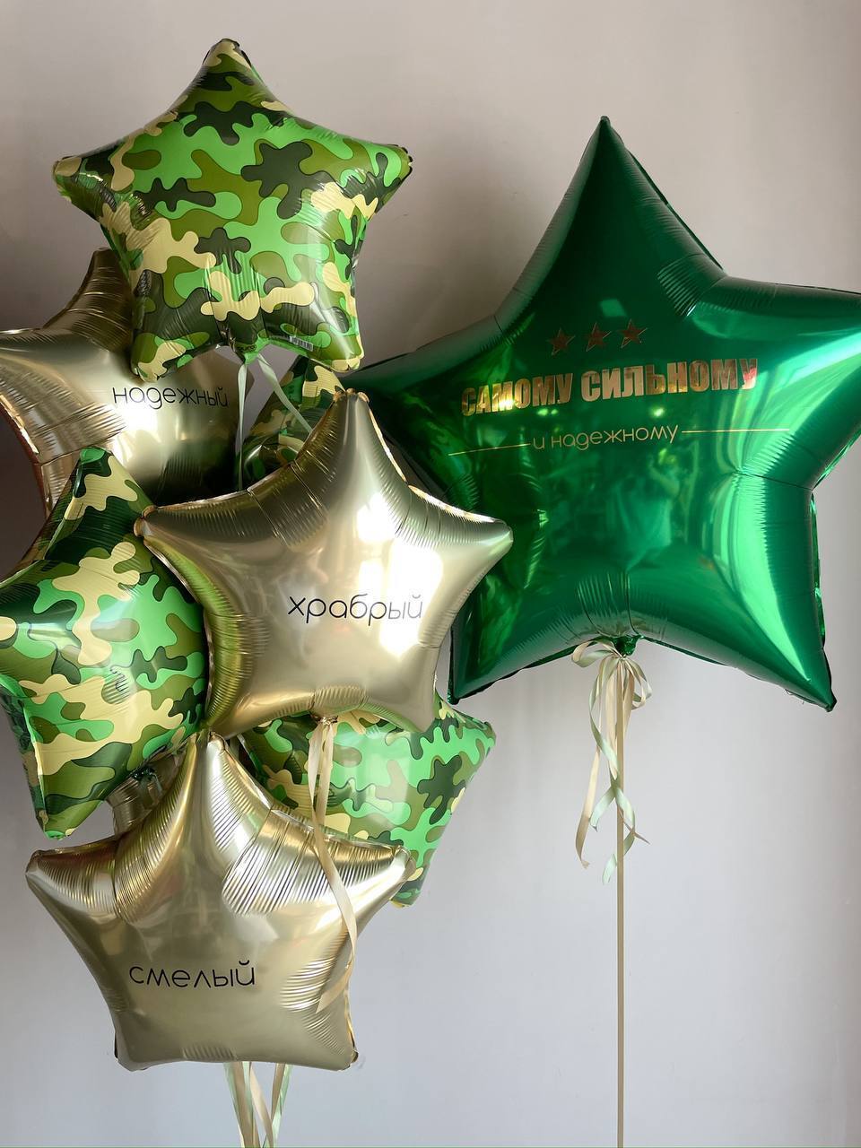 Фонтан из 4 камуфляжных звезд и 4 однотонных с надписями