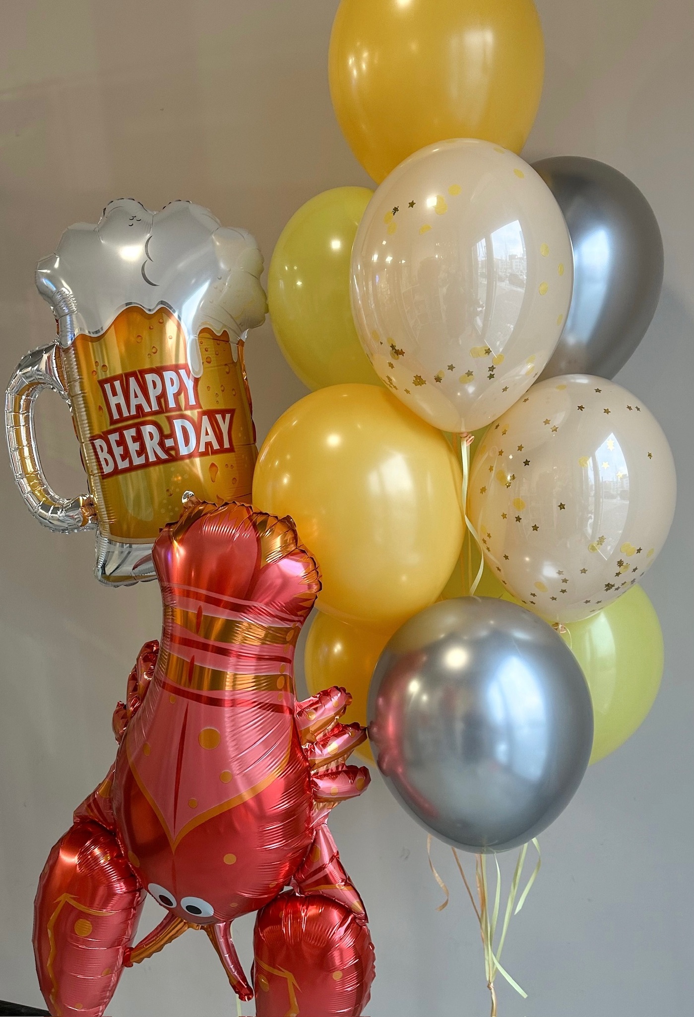 Фонтан из 10 шаров (2 кристальных с конфетти, 2 хром, 6 обычных)