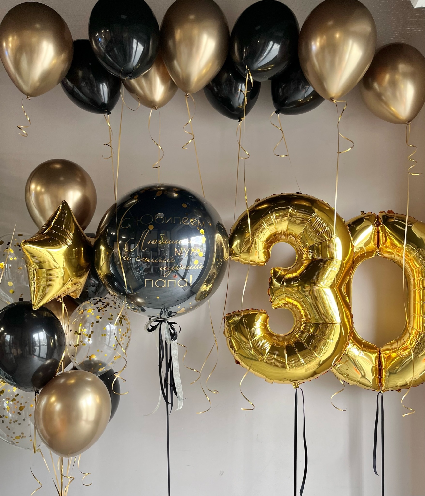Фонтан 10 шаров (3 черных, 3 с конфетти, 3 хром, звезда)