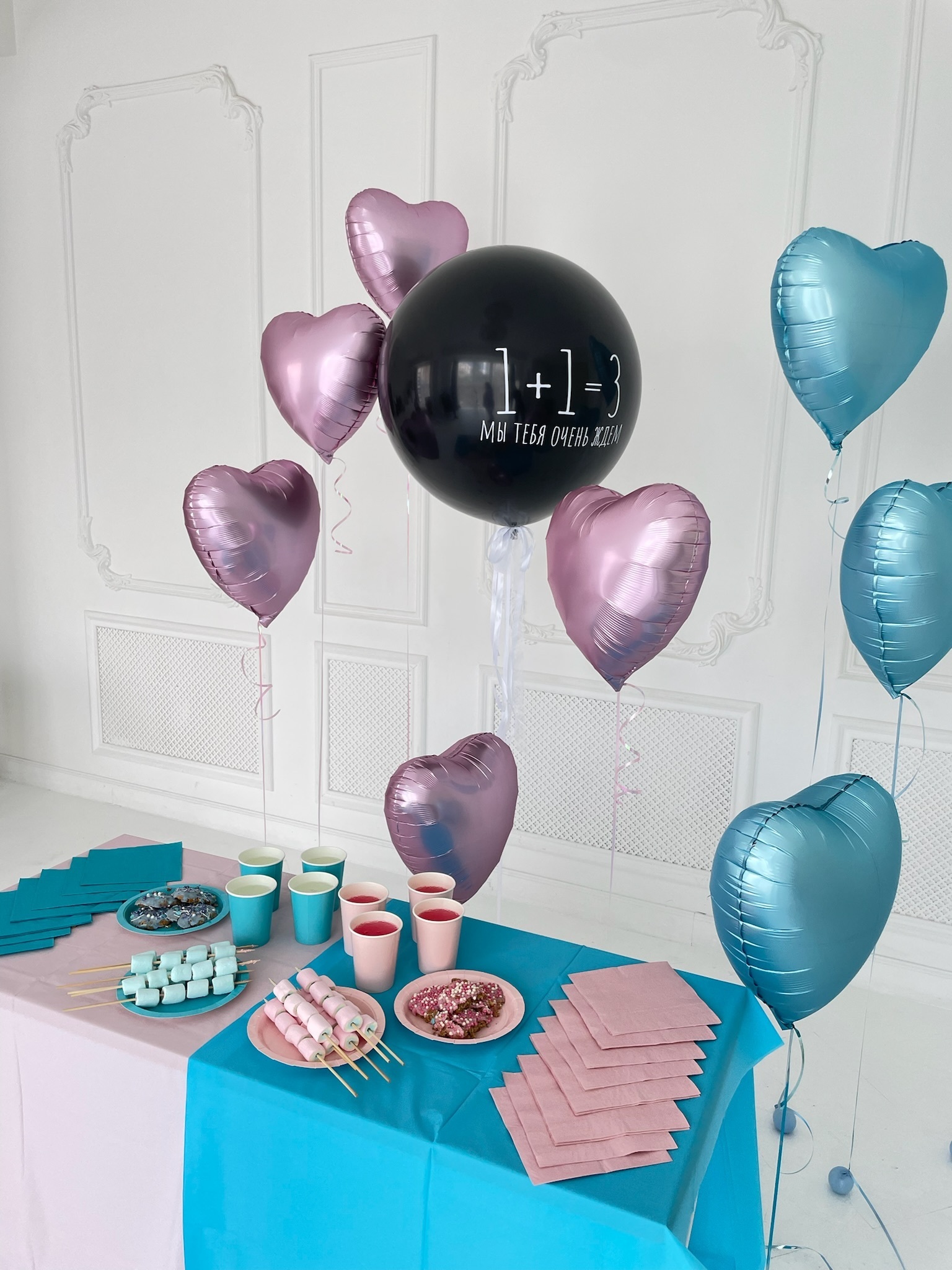 • 10 сердец на индивидуальных грузиках (5 голубых, 5 розовых)