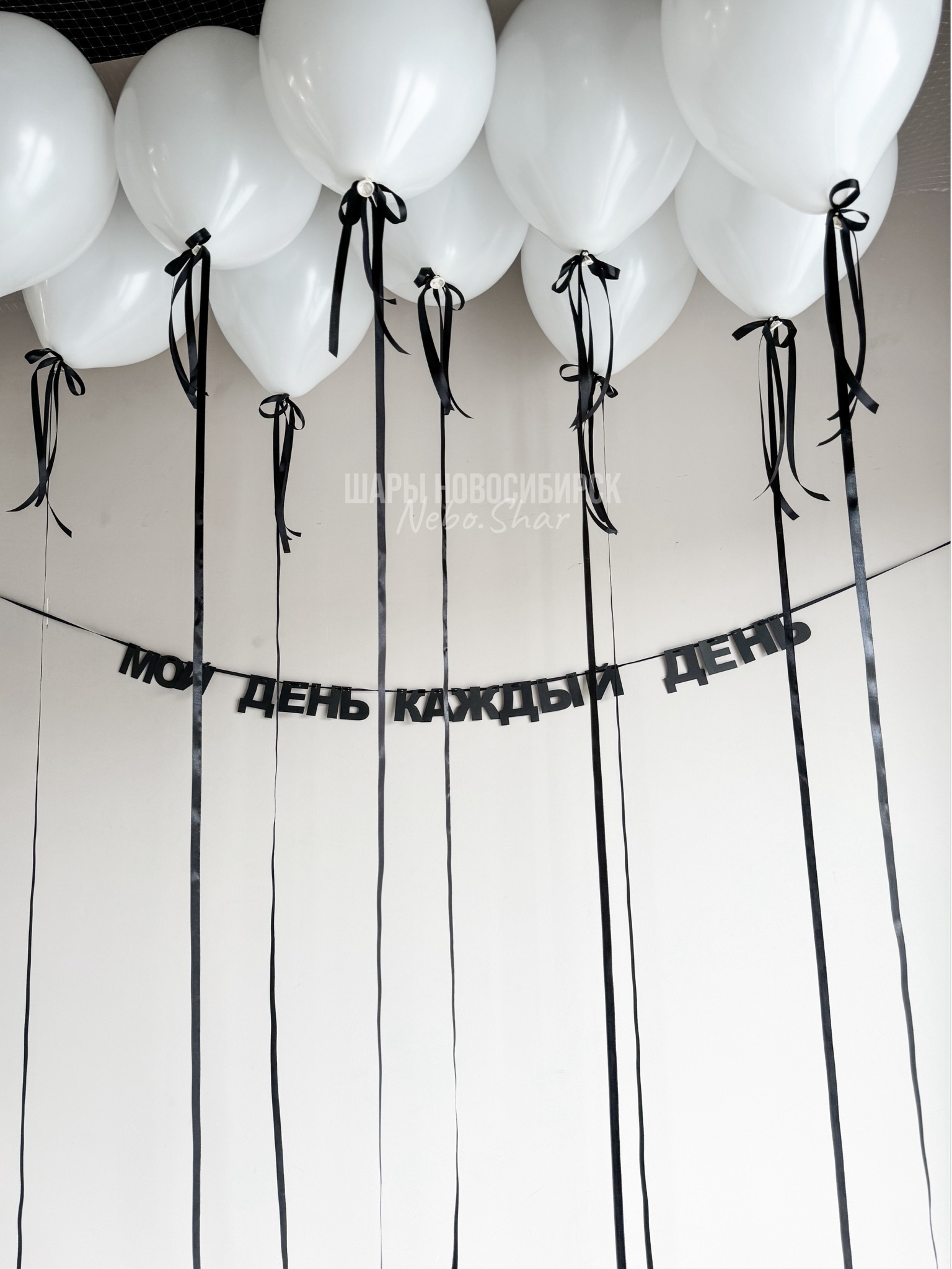 10 шаров под потолок с бантиками