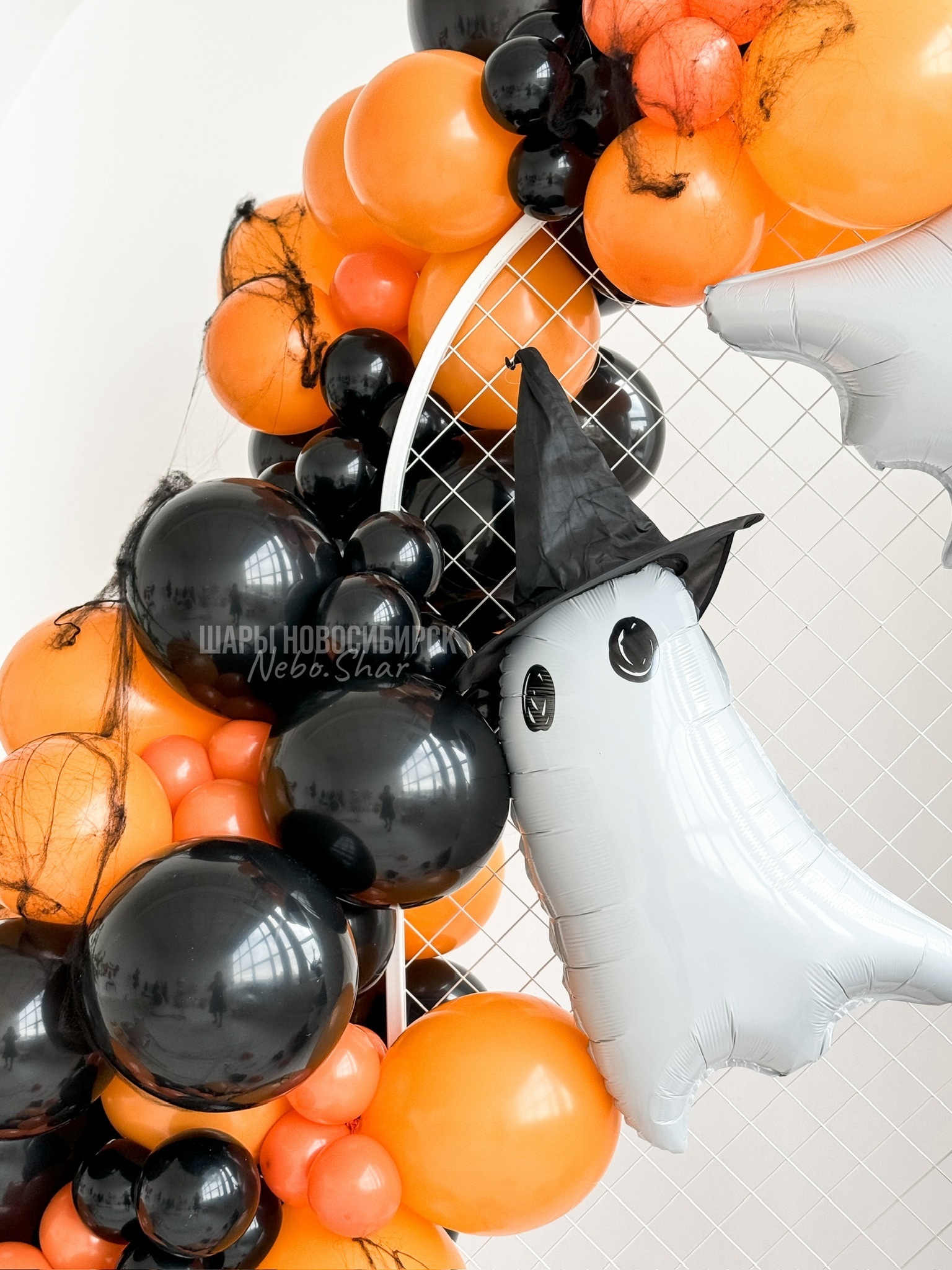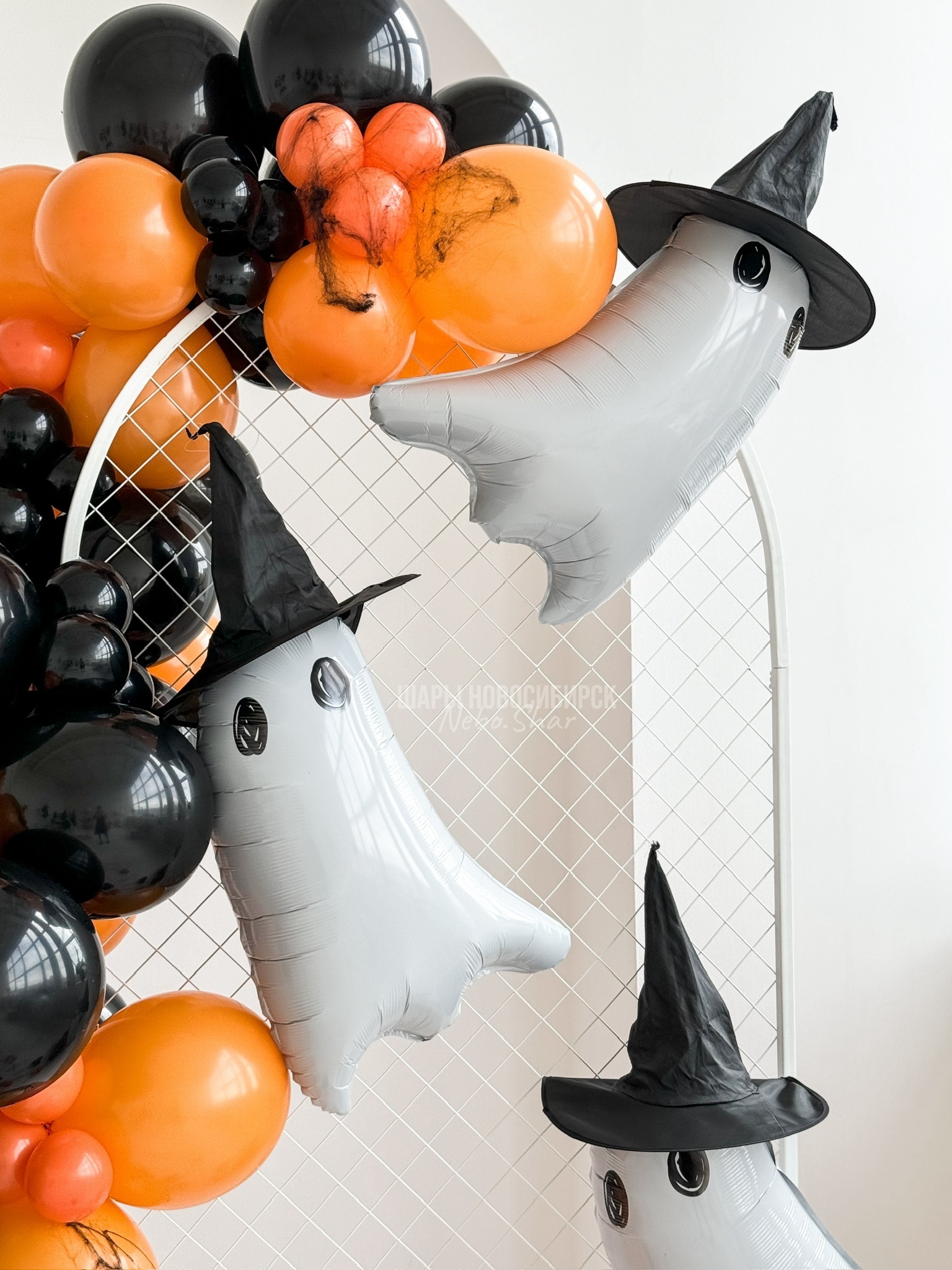• Фотозона на Хэллоуин с привидениями в шляпах