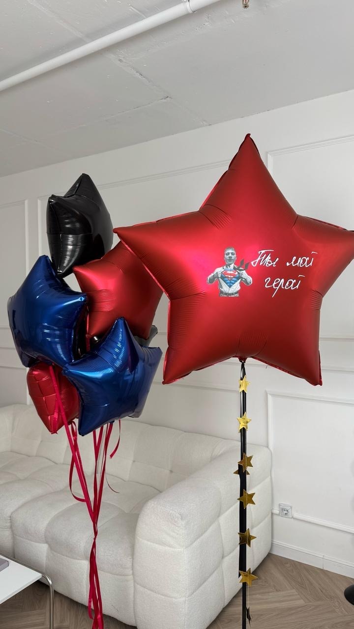 Звезда 90 см с фото и двойной надписью