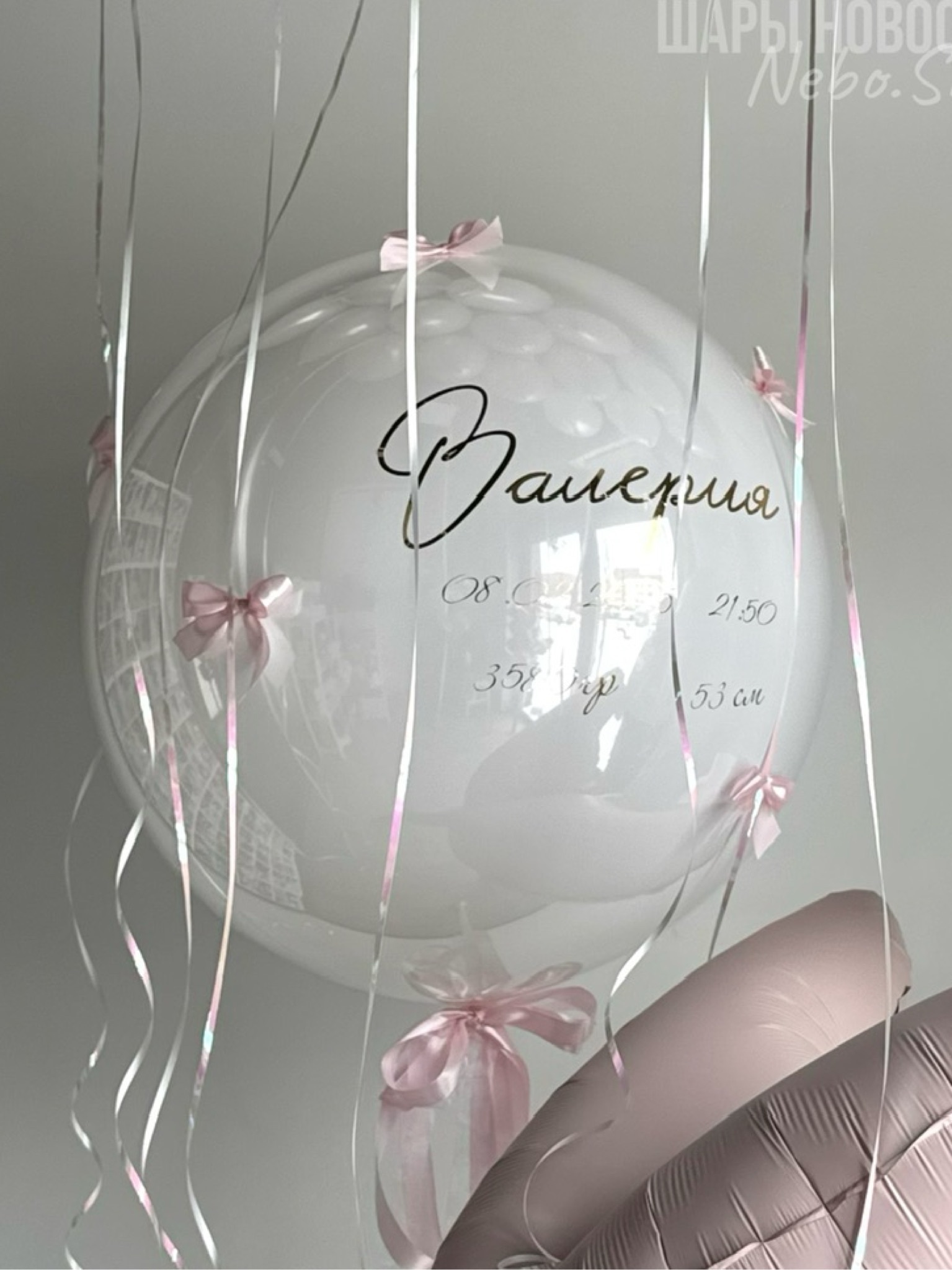 • Стеклянный шар с надписью и бантиками по всему шару