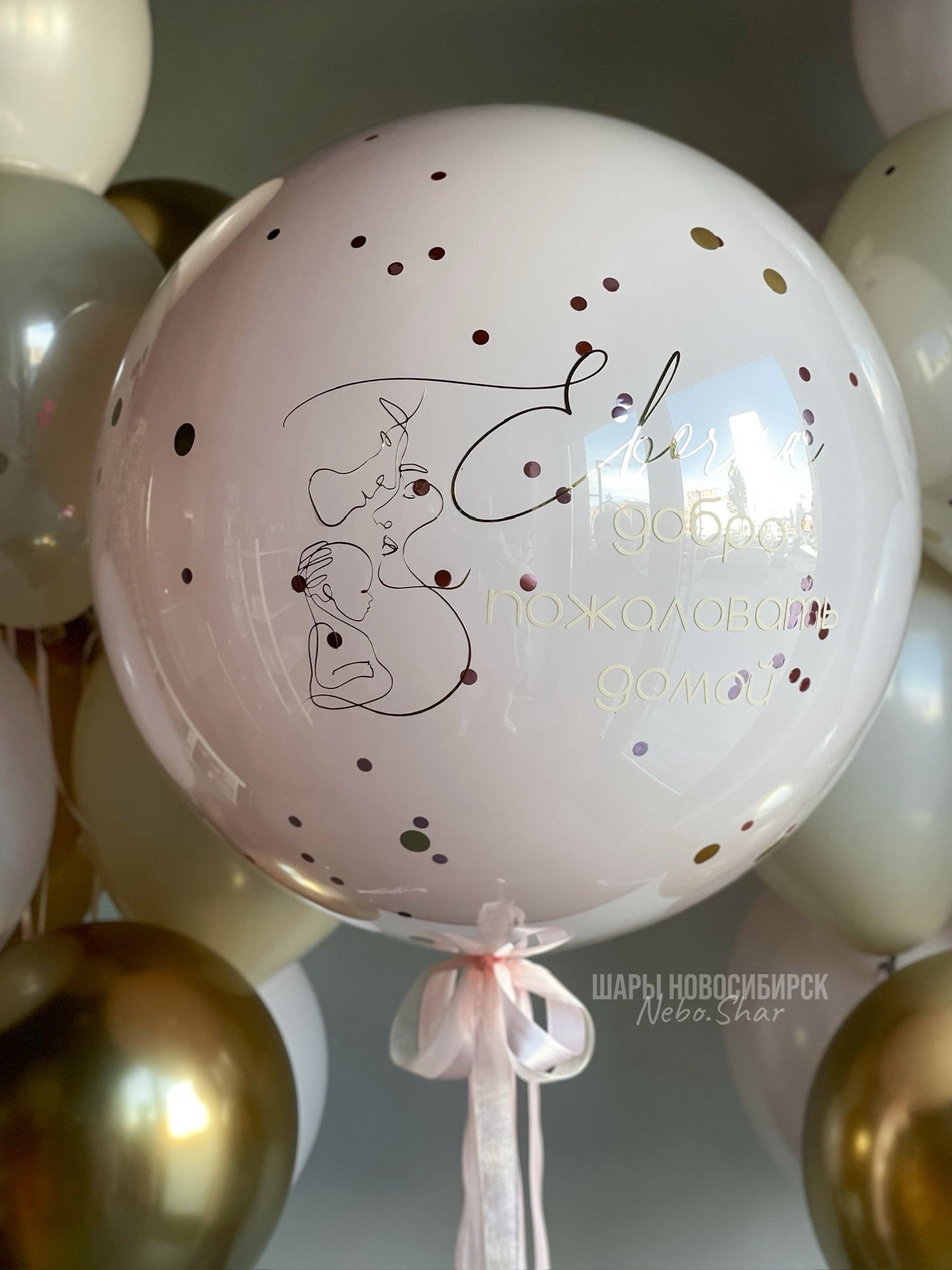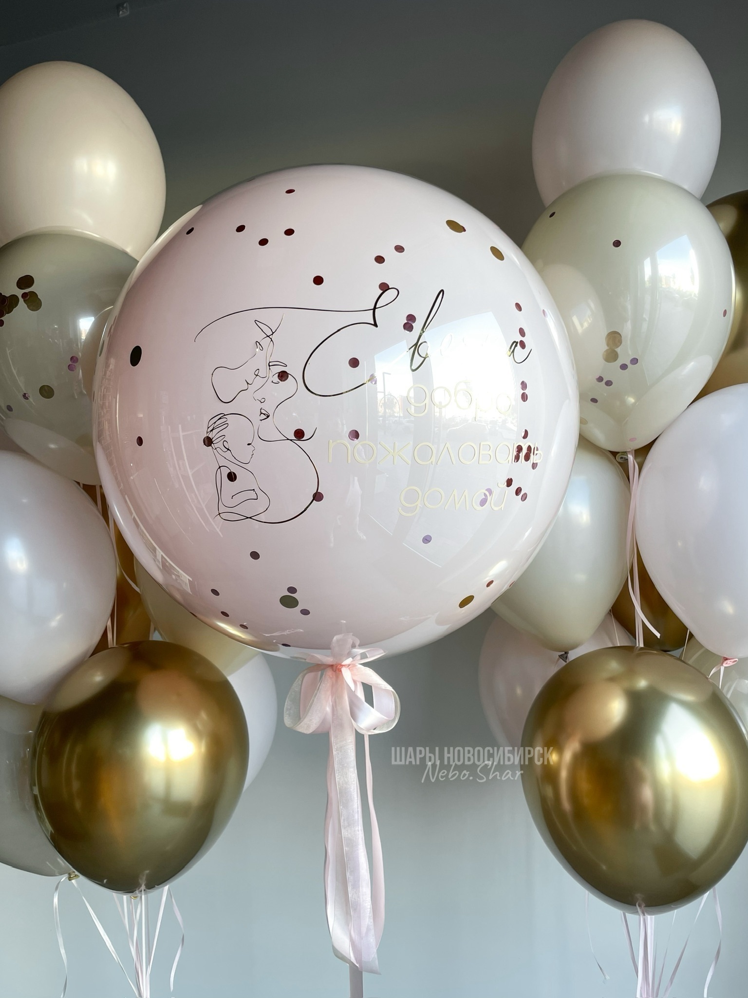 • Два фонтана по 10 шаров (2 дабл Стафф белый песок, 3 хром золото, 4 розовый макарунс, 2 белый песок)