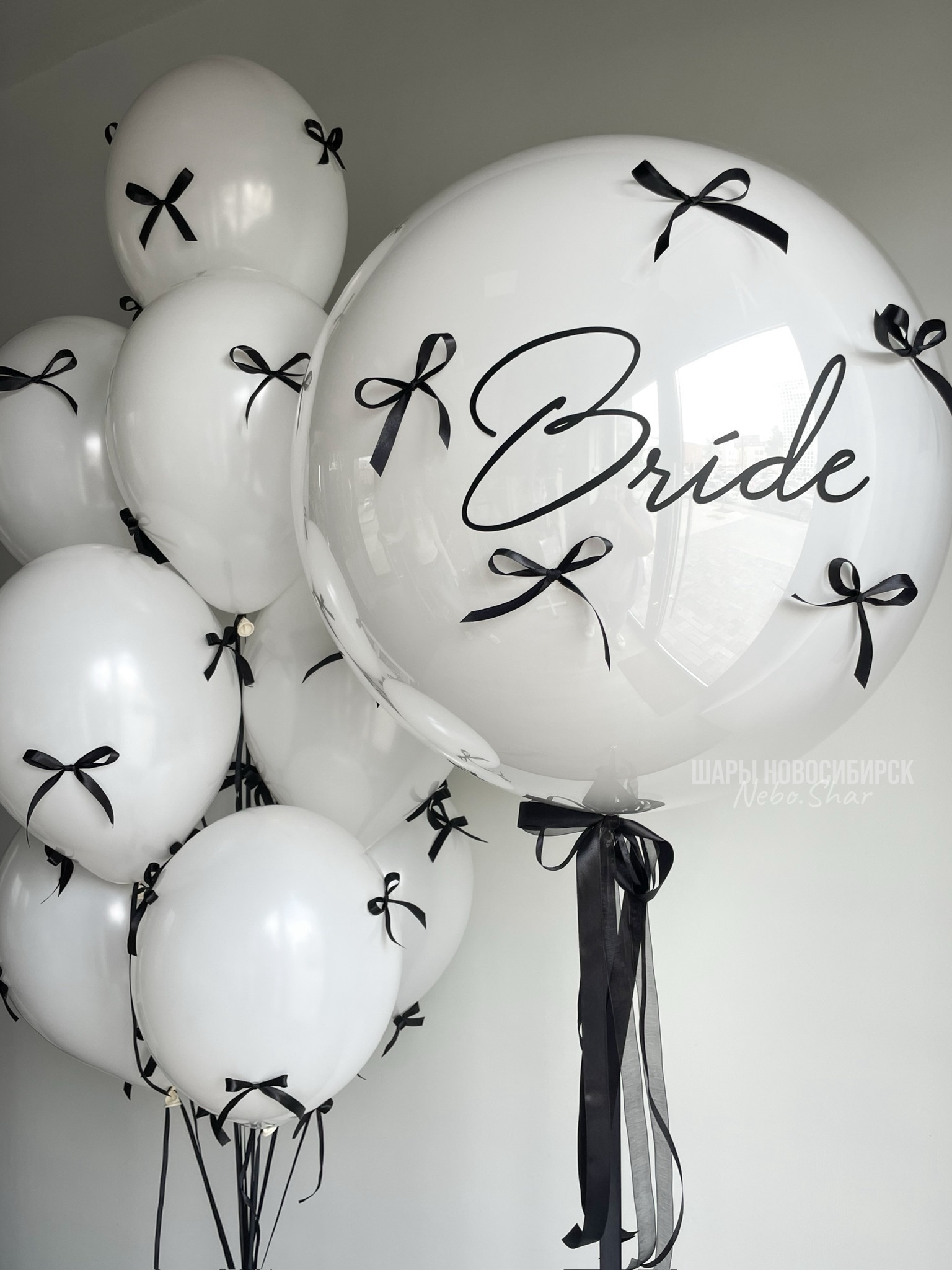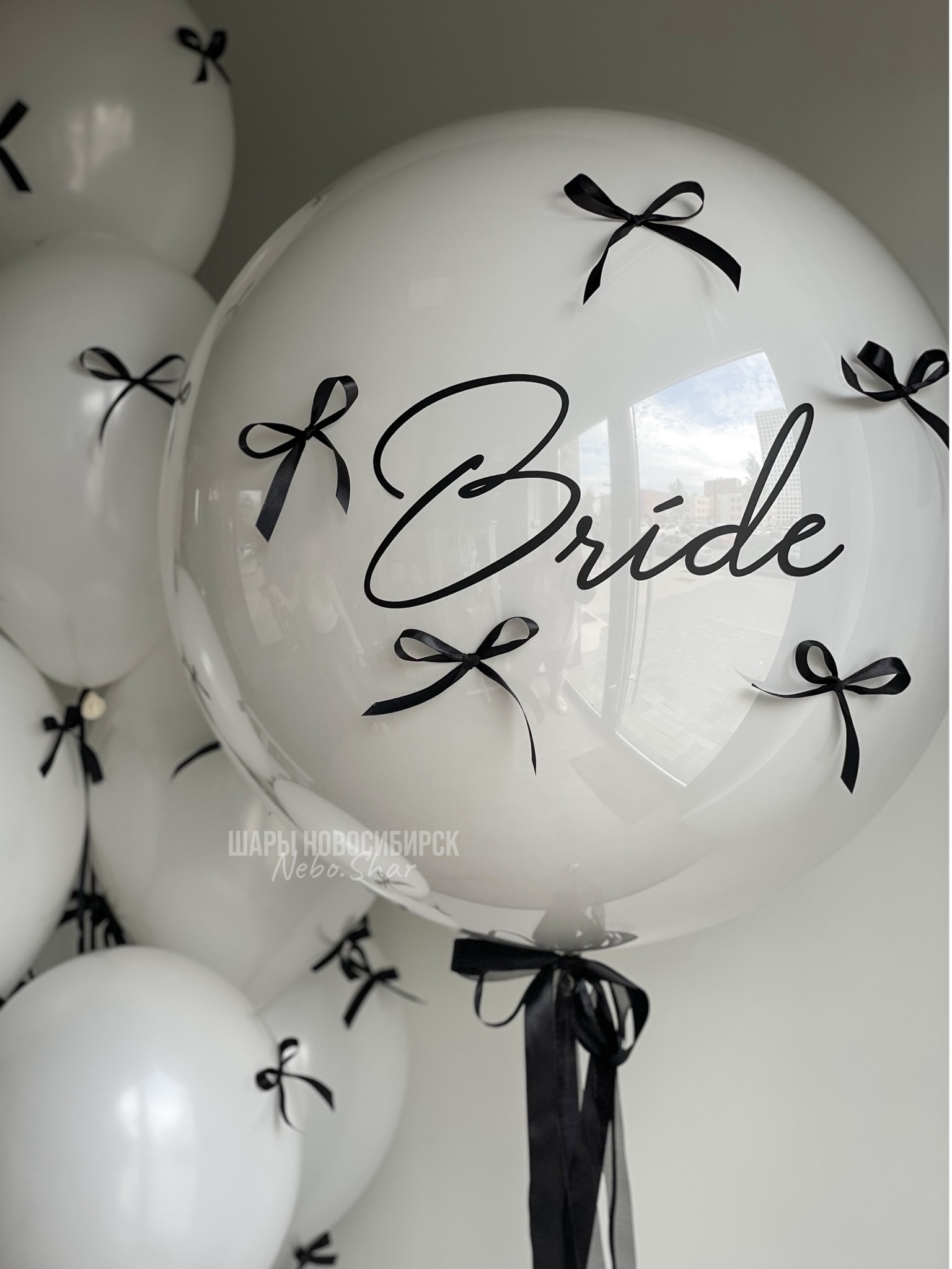 • Стеклянный белый шар с надписью и бантиками с одной стороны шара
