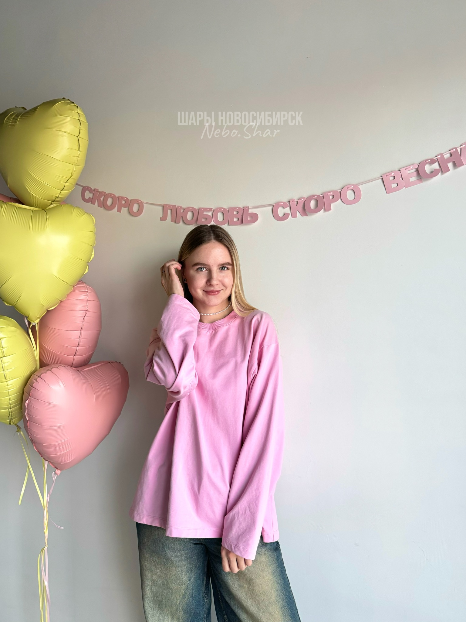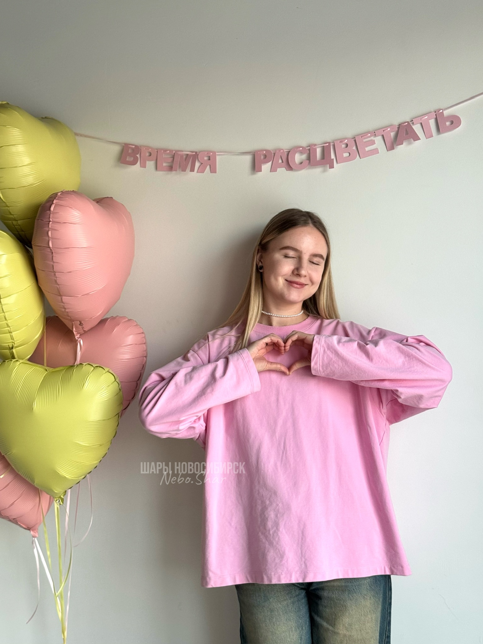 Фонтан из 6 сердец и надпись на стену