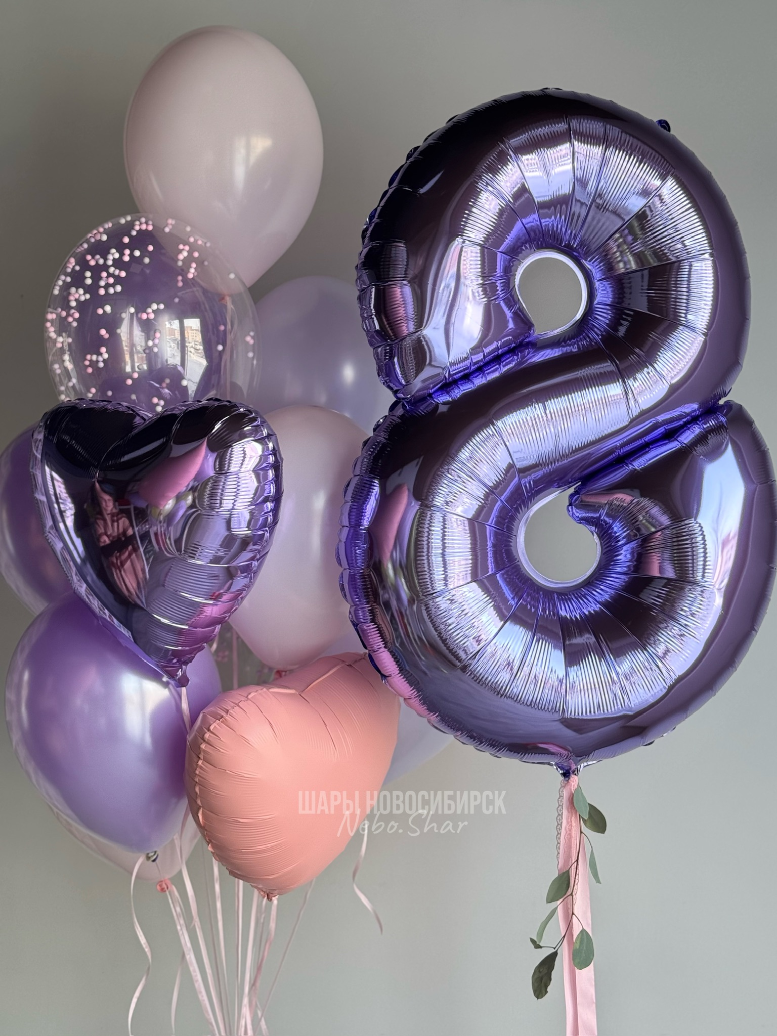 Фонтан из 11 шаров (1 с конфетти, 2 сердца, 8 обычных)