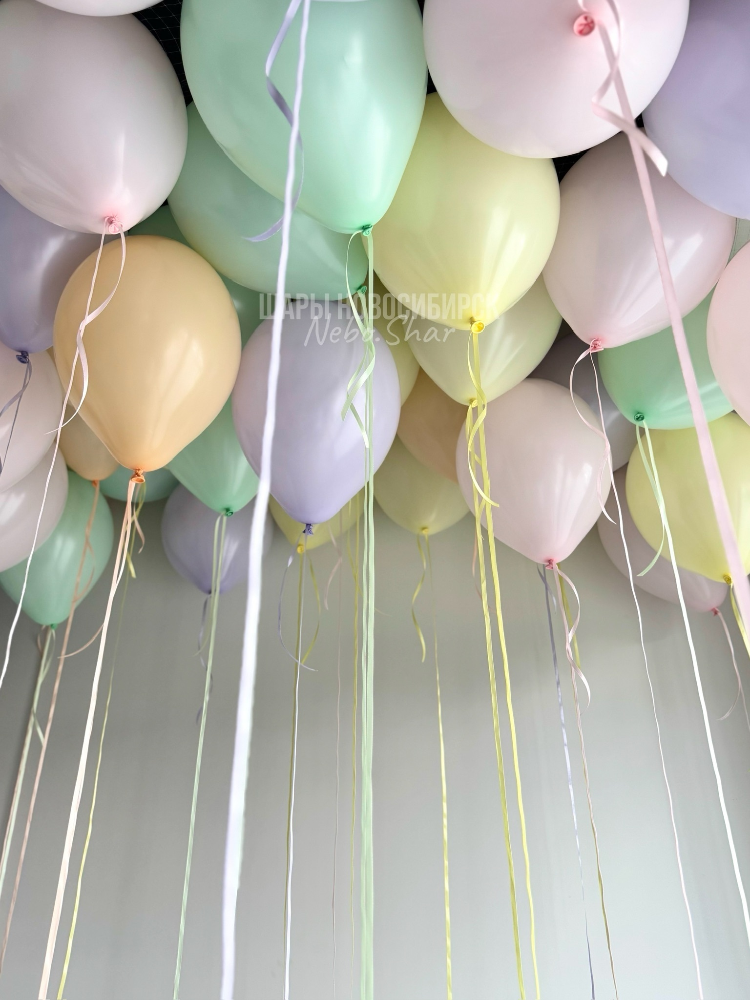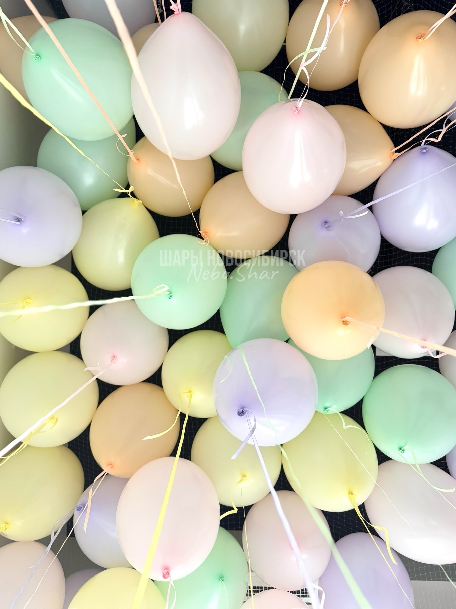 • 50 шаров под потолок в гамме макарунс