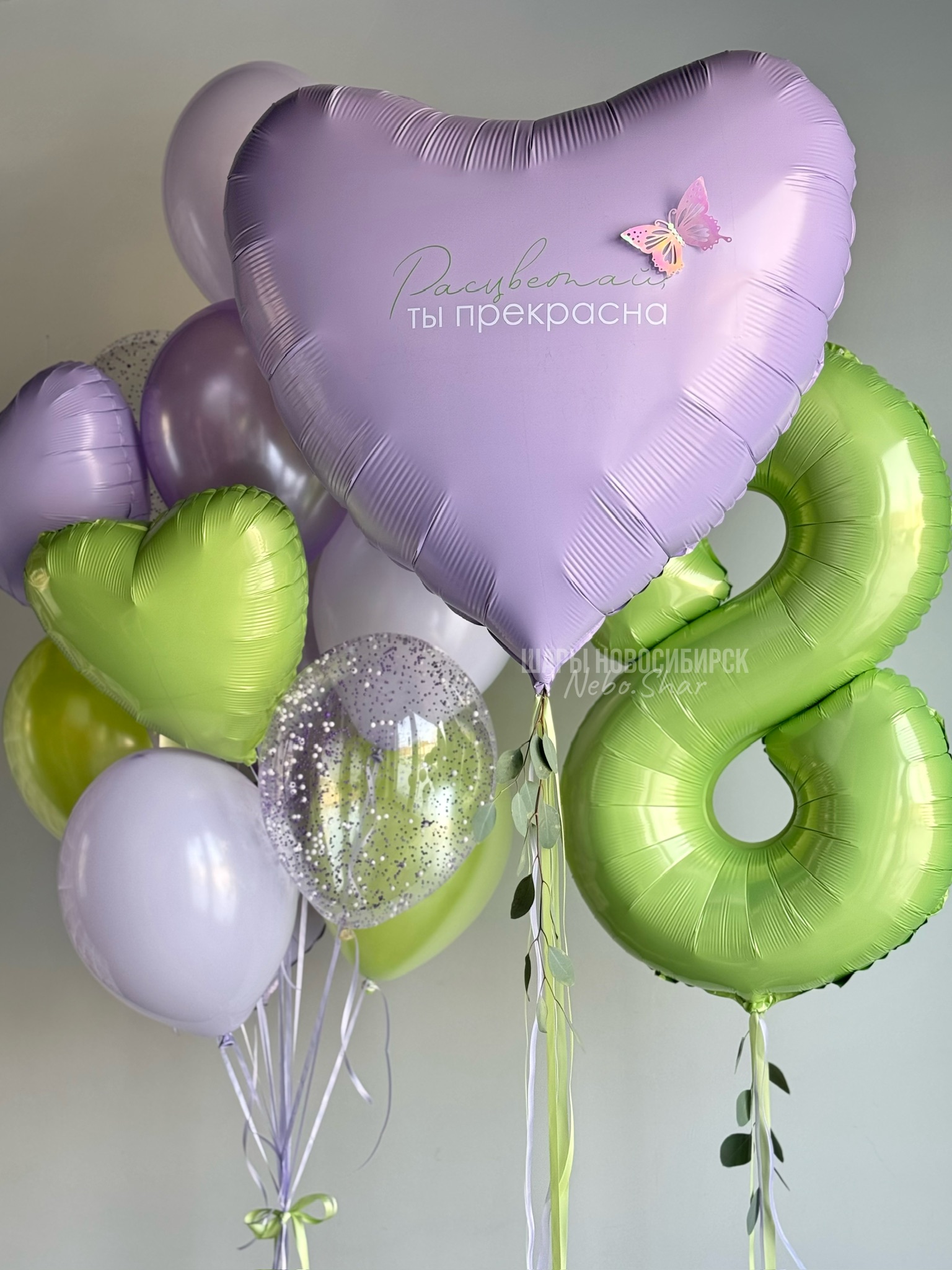 Сердце 90 см с бабочкой и зеленью