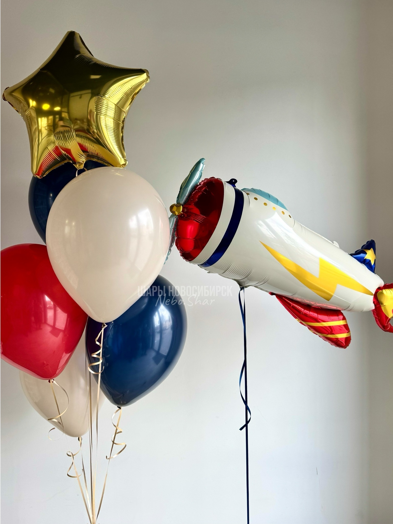 • Фонтан 6 шаров (2 темно-синий, 2 крем, 1 красный, звезда золото)
