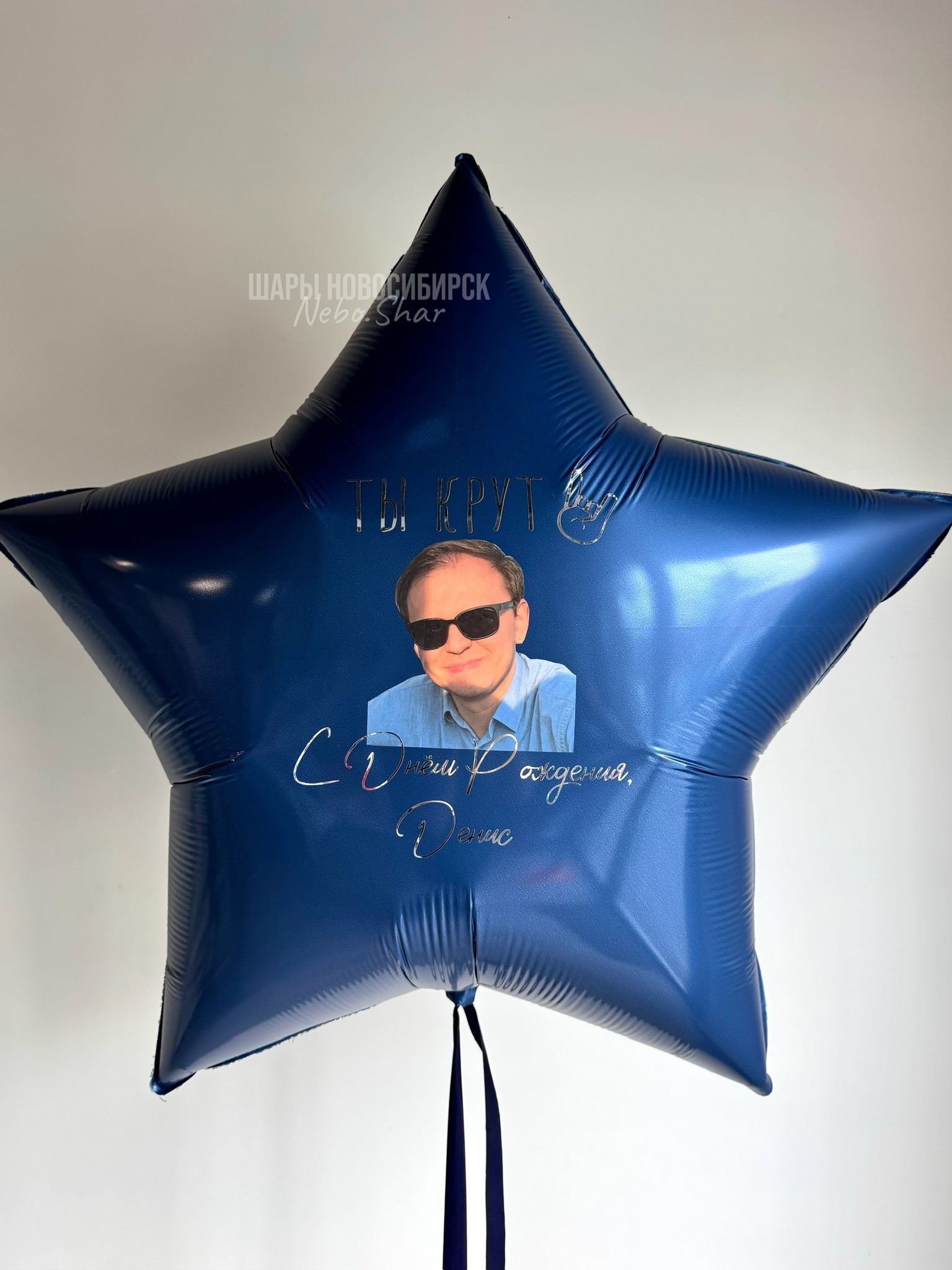 • Темно-синяя звезда 90 см с фото и надписью