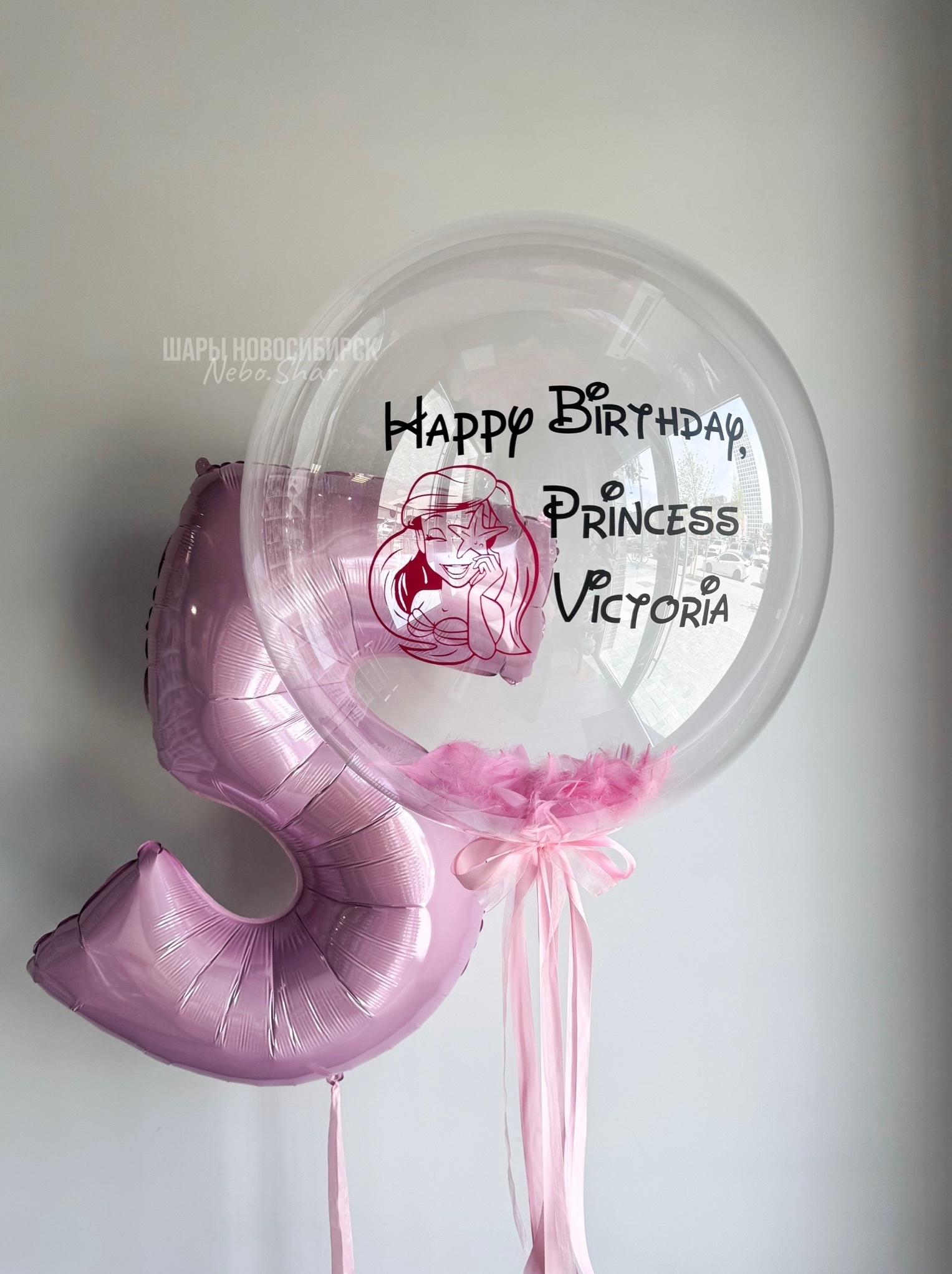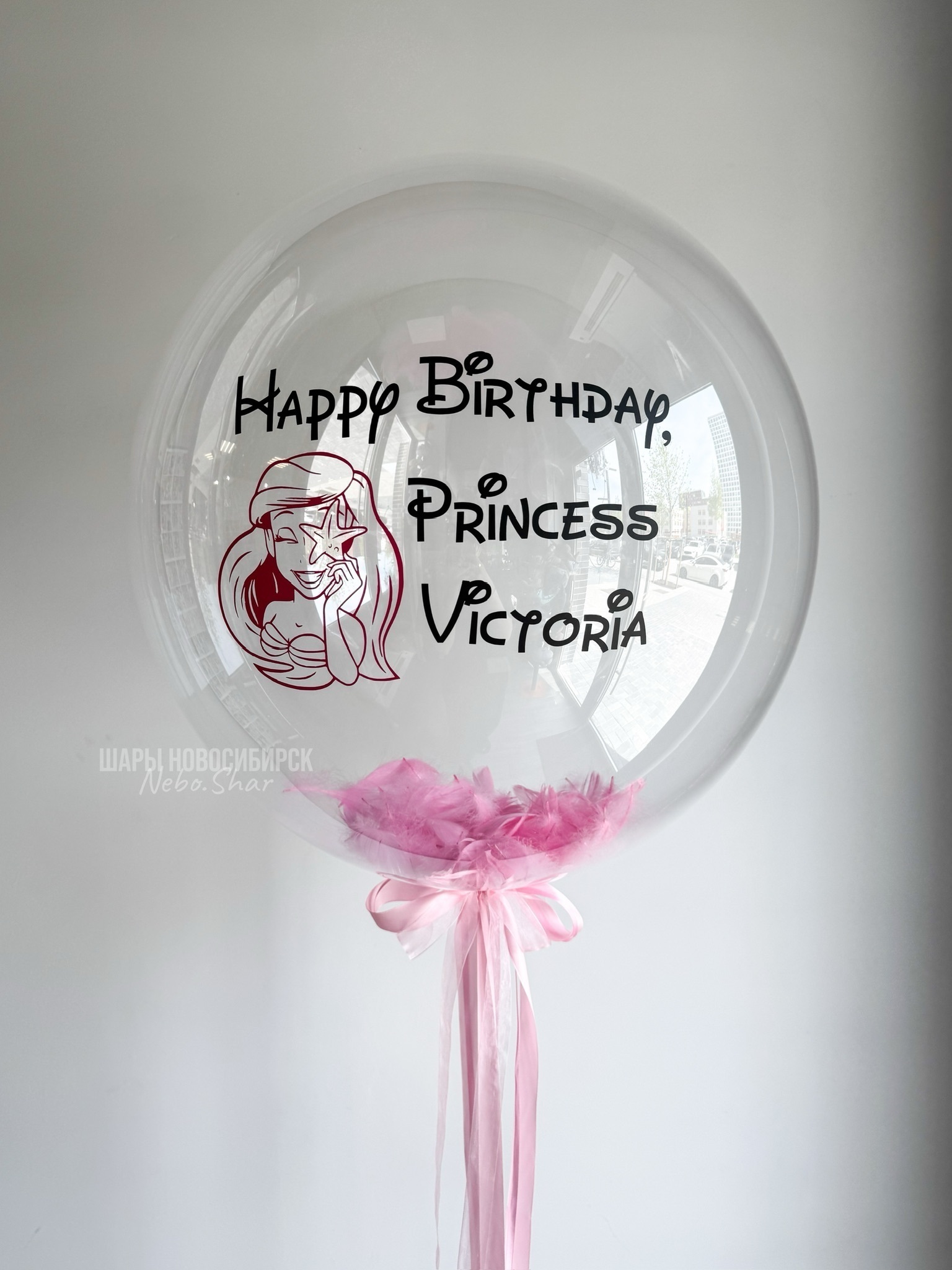 • Бабл с перьями 60 см с надписью и рисунком