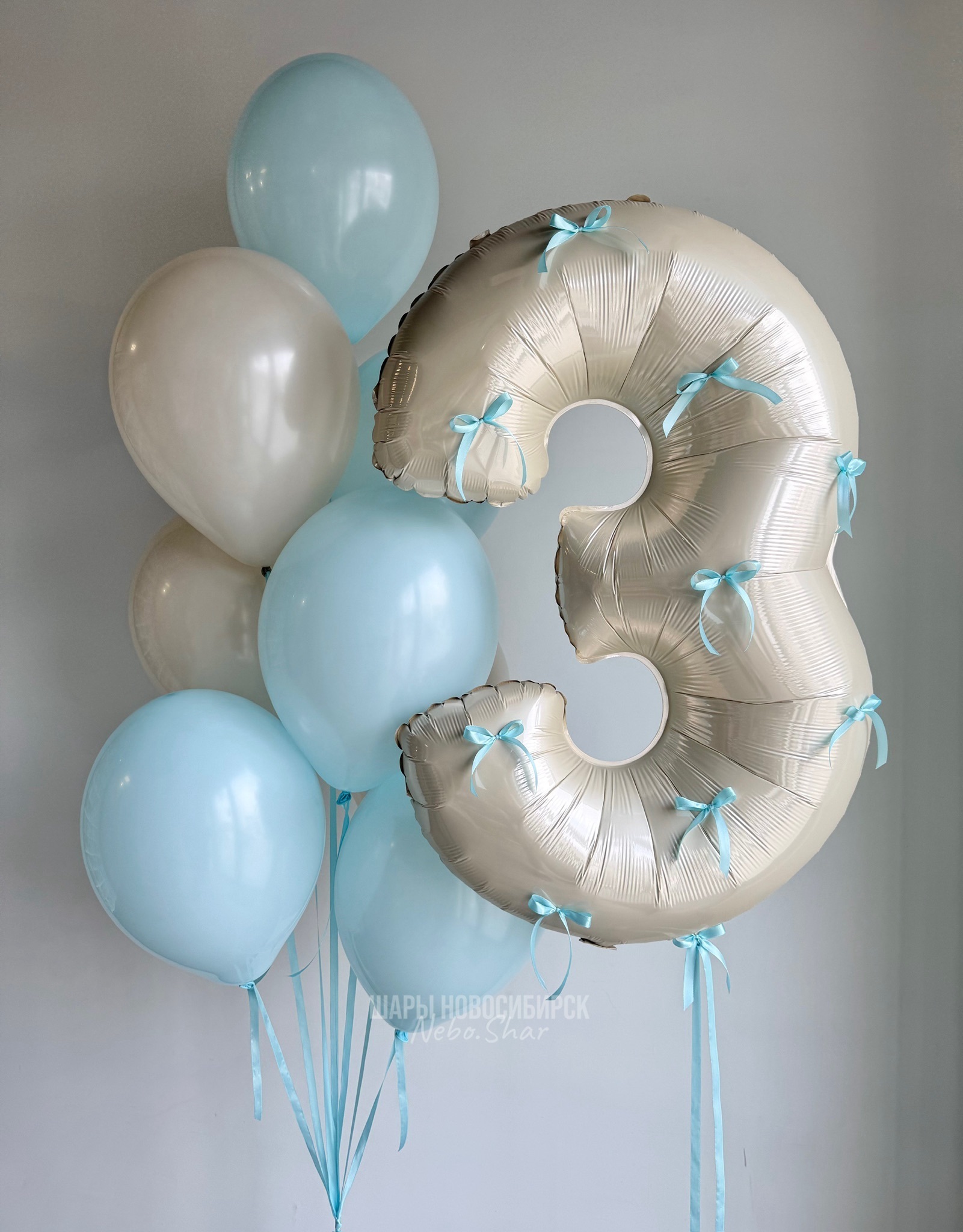 • Фонтан из 8 шаров (5 голубой макарунс, 3 белый песок)