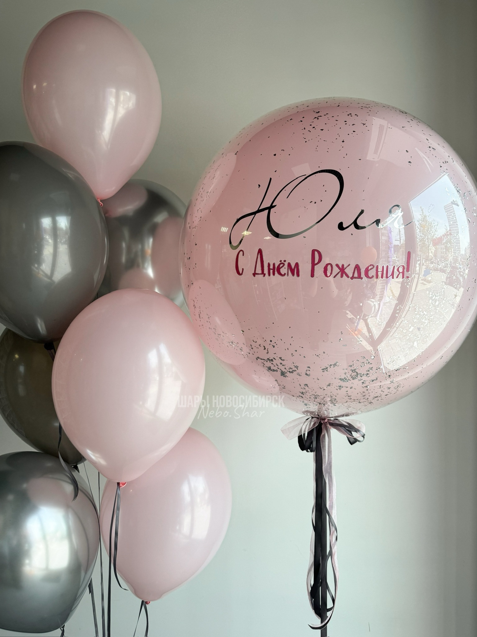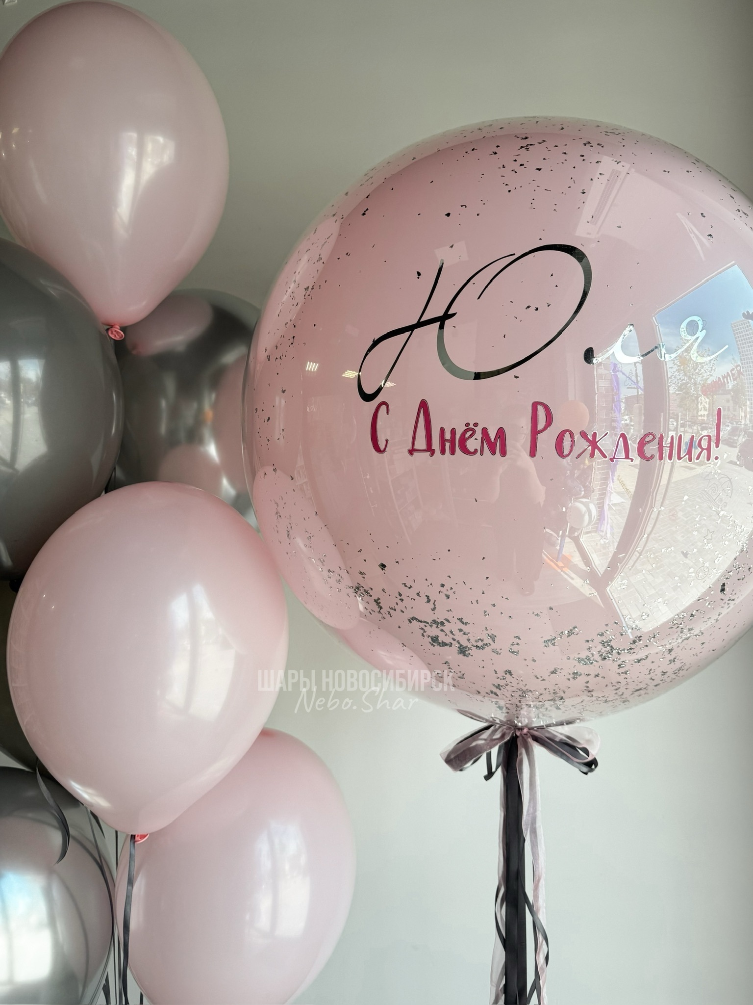 • Стеклянный шар розовый макарунс 60 см с надписью