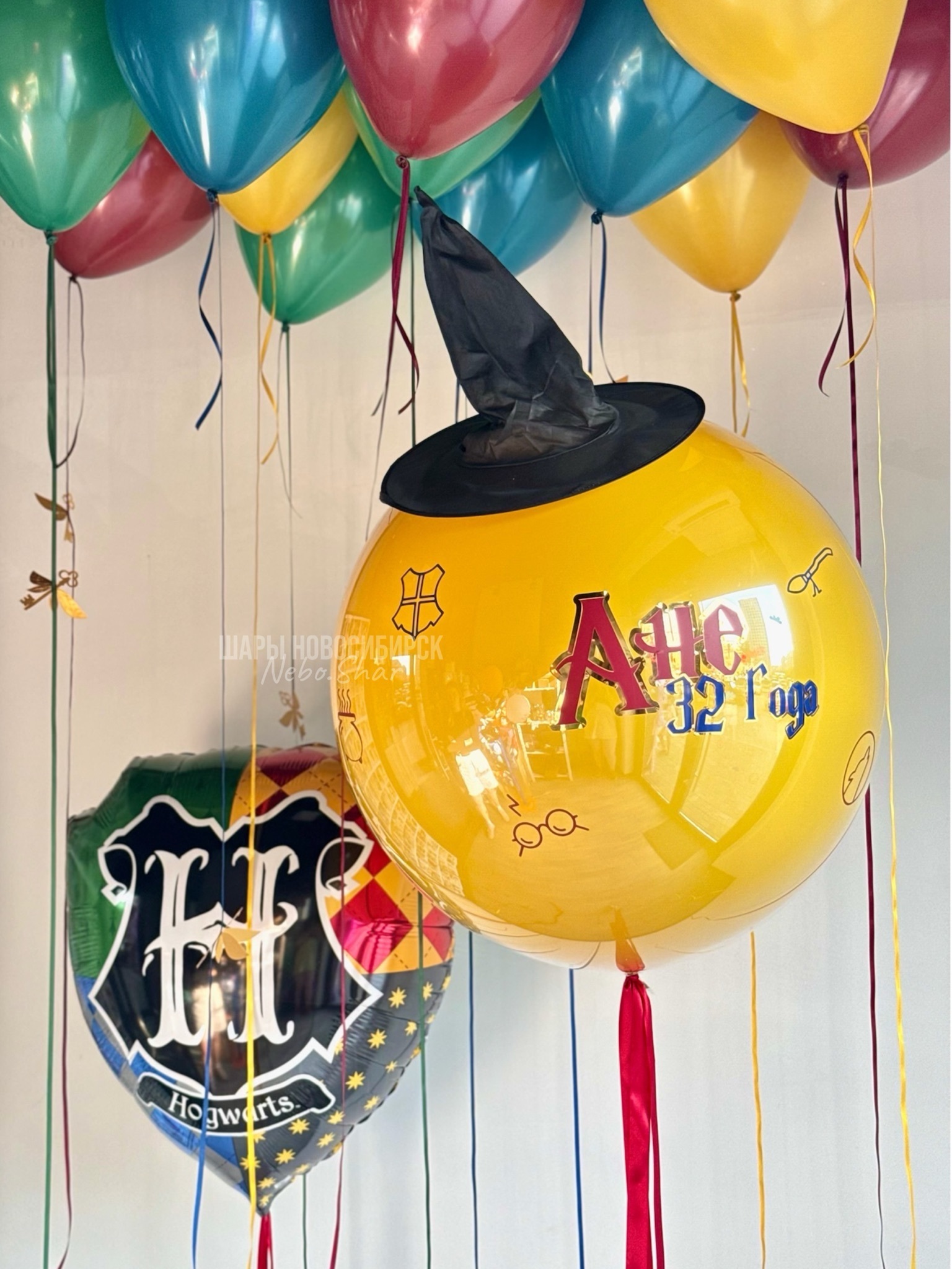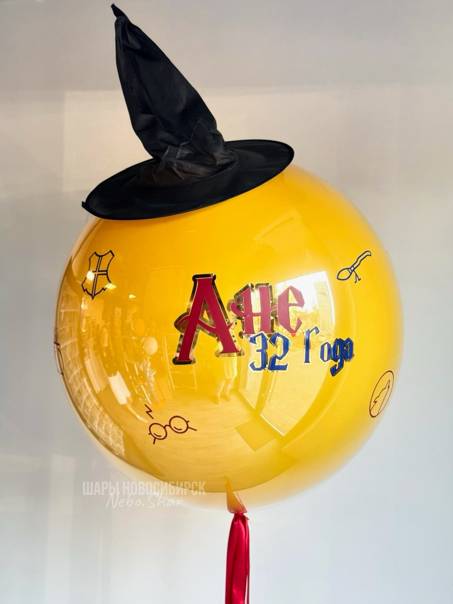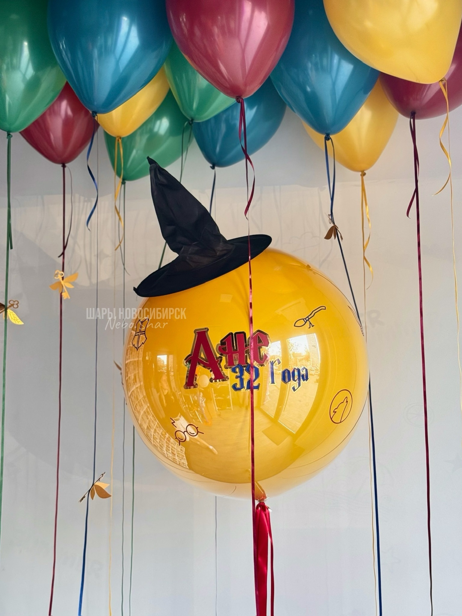 • Стеклянный шар горчица 60 см с надписью, наклейками и шляпой