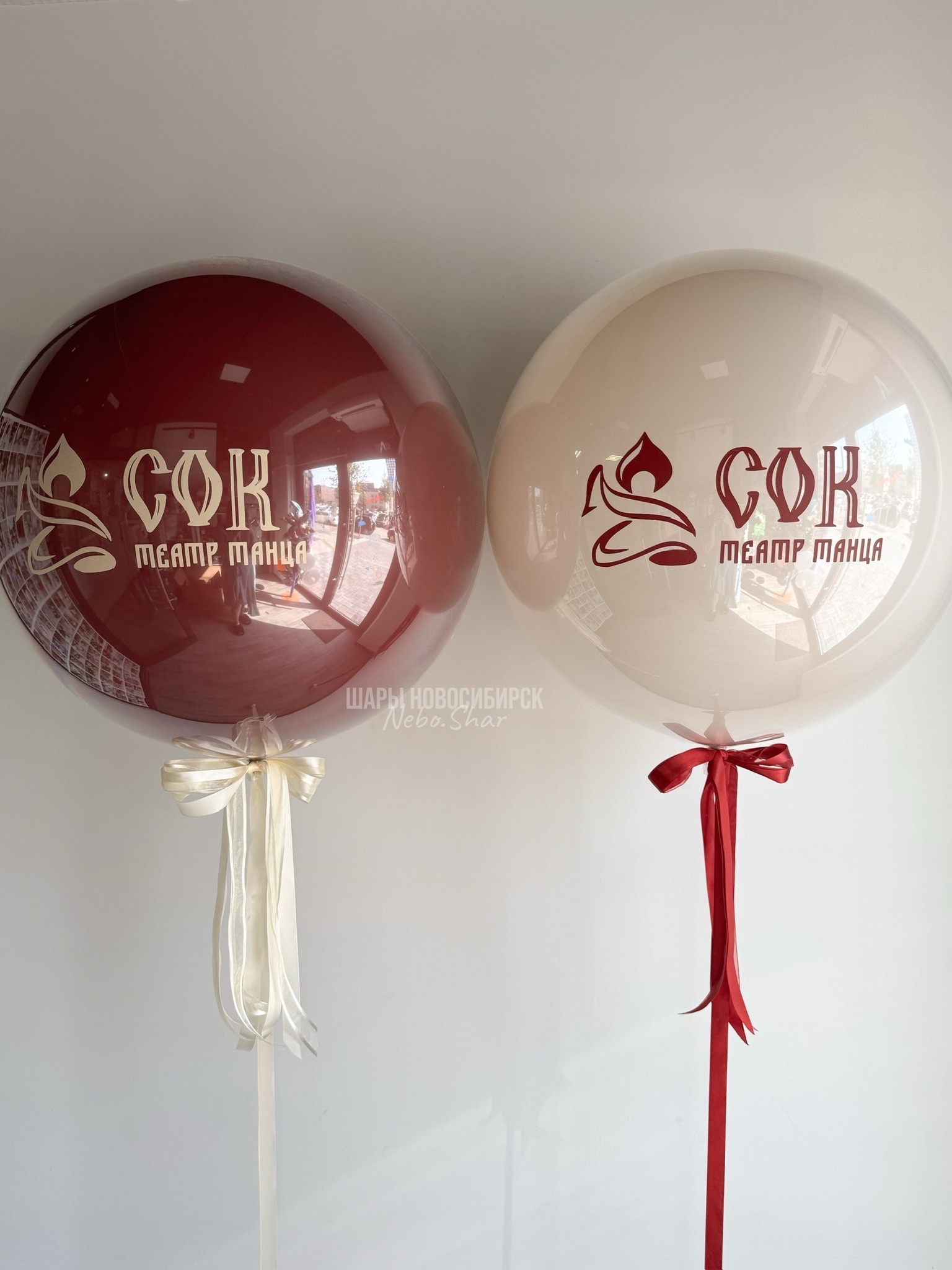 • Два стеклянных шара 60 см (крем и мерло) с надписями