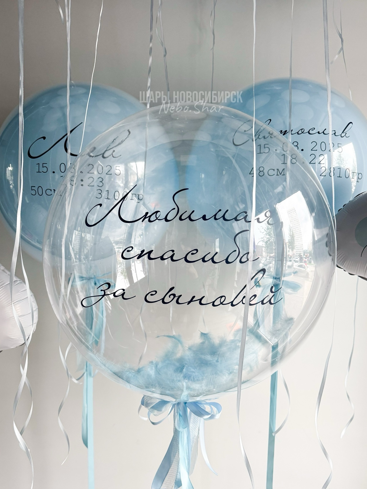 • Два стеклянных голубых шара 60 см с надписями