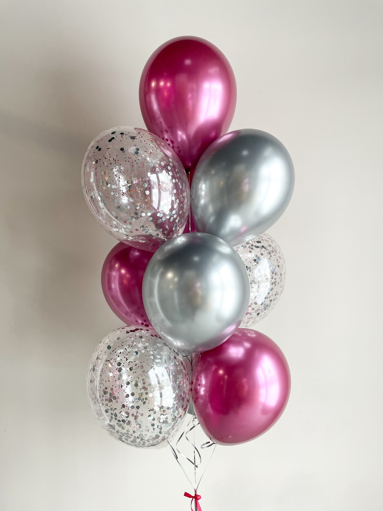 - Фонтан из 10 шаров: 3 с конфетти, 7 хром