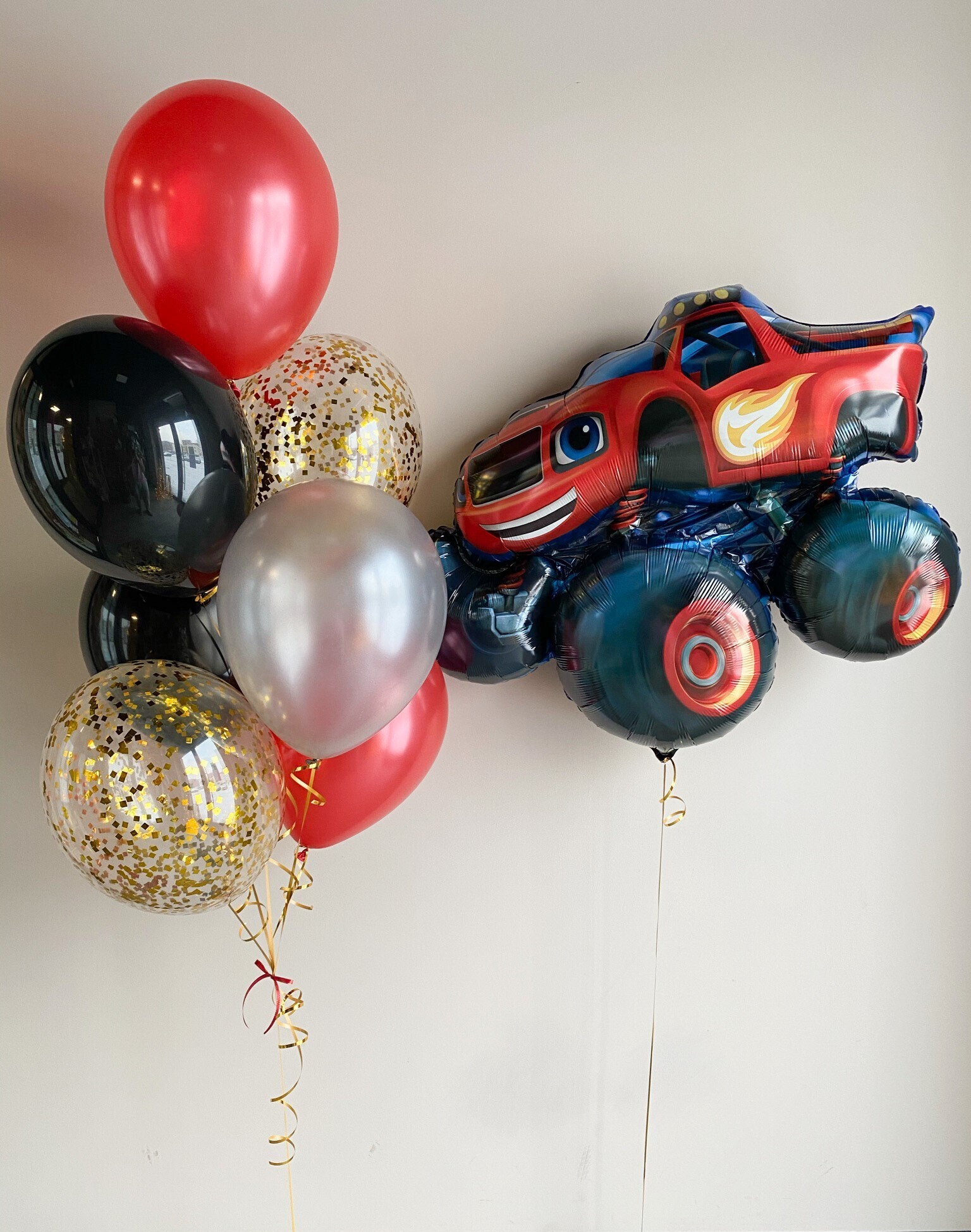 - Фонтан из 7 шаров: 2 с конфетти и 5 однотонных.