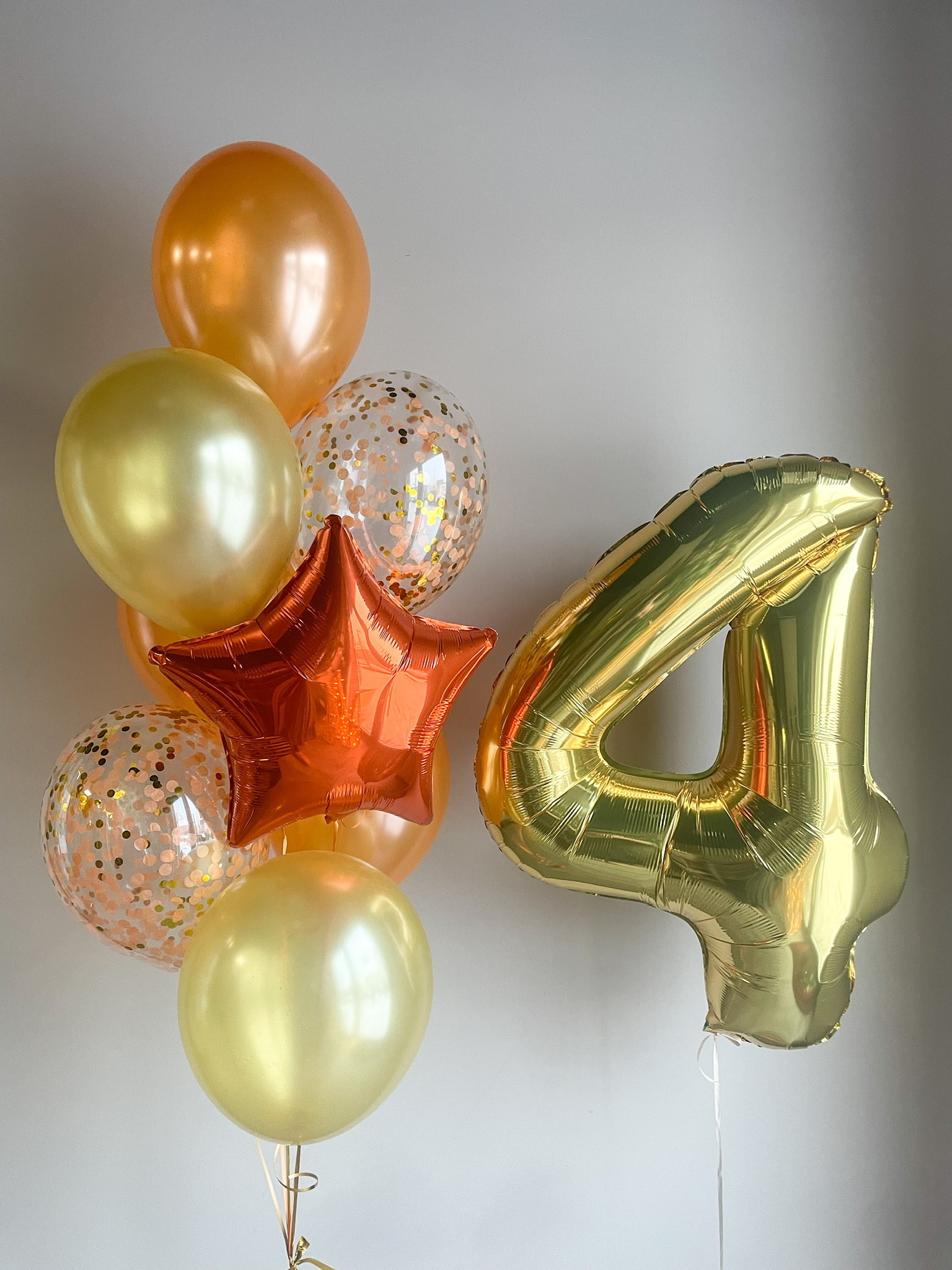 - Фонтан из 8 шаров: звезда, 2 с конфетти, 5 однотонных.