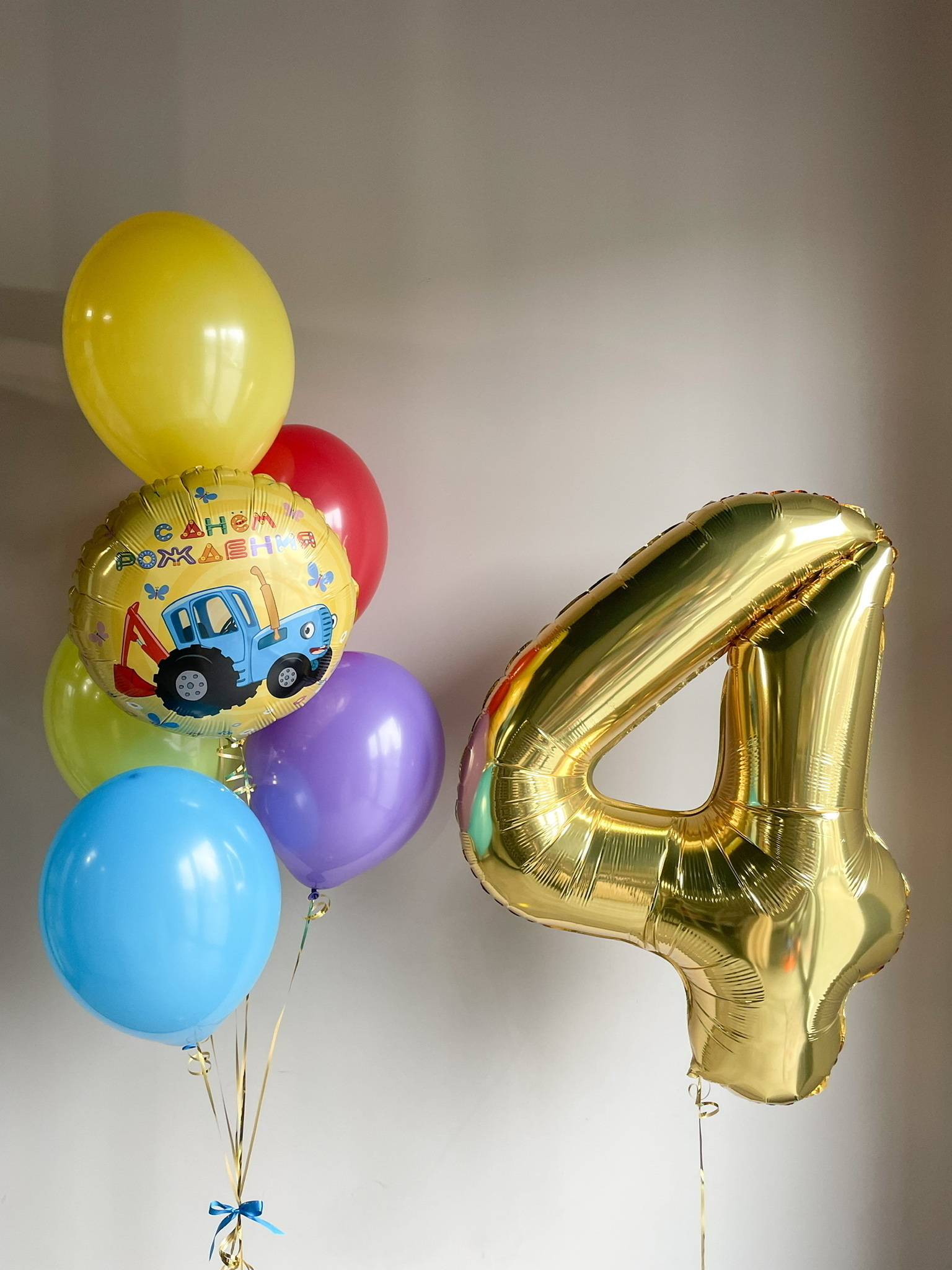 - Фонтан из 6 шаров: Круг Синий трактор, 5 однотонных