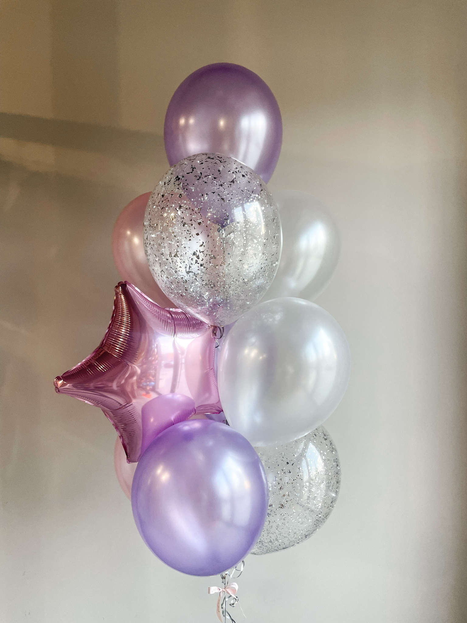 - Фонтан из 10 шаров: звезда, 2 с конфетти, 7 однотонных