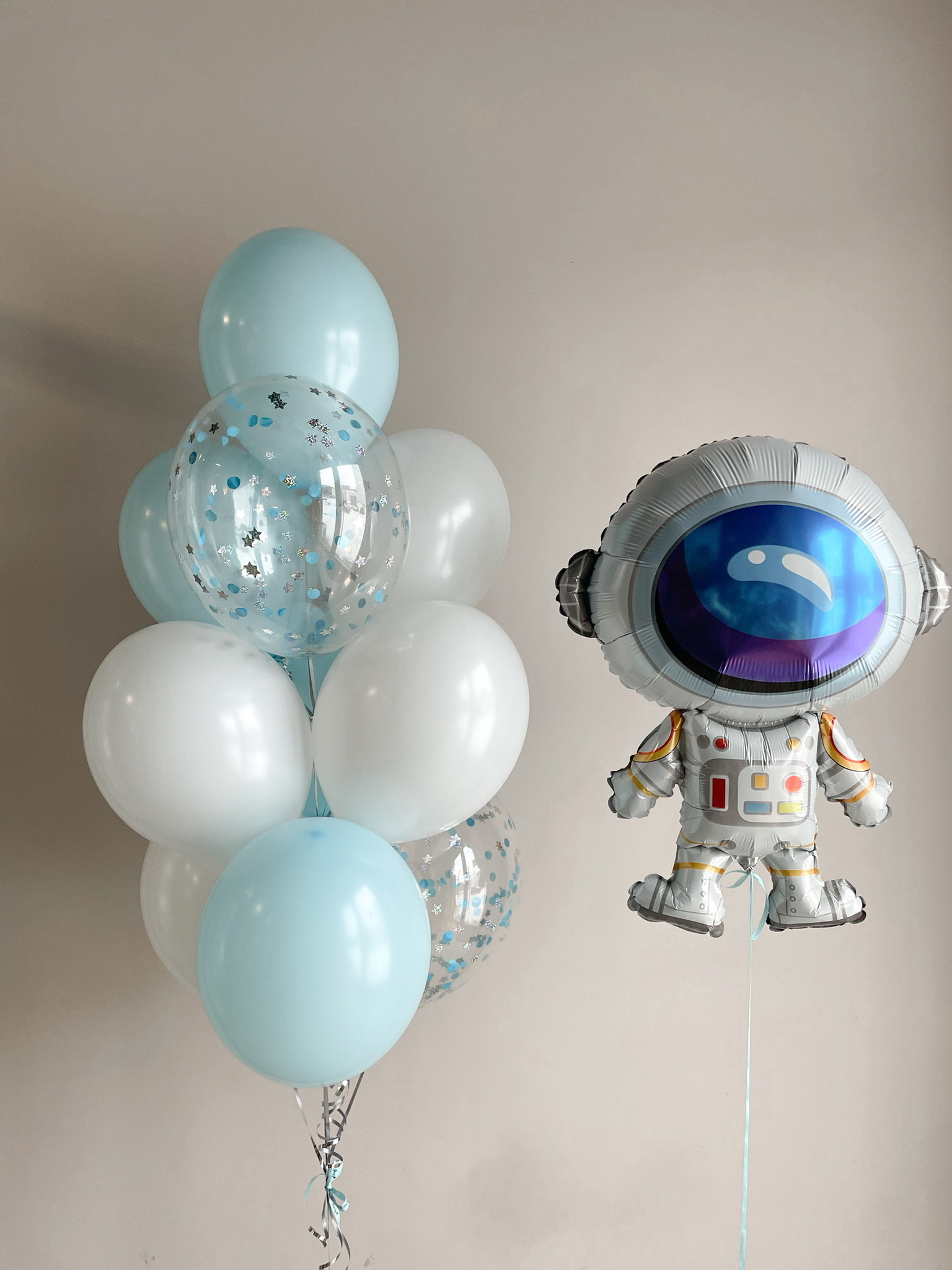 - Фонтан из 10 шаров: 2 с конфетти, 8 однотонных.