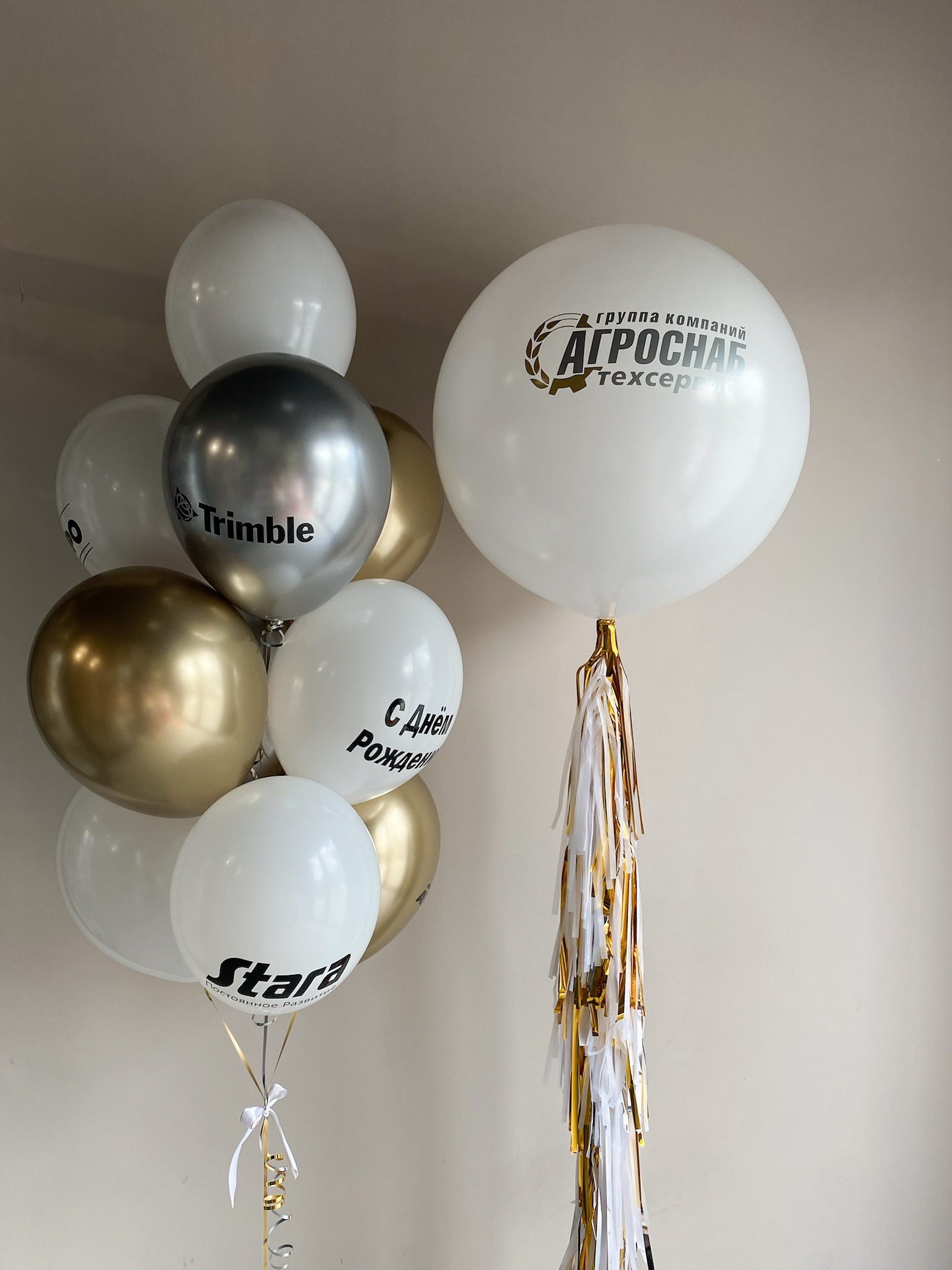 - Шар гигант с надписью/логотипом и кисточками тассел до пола