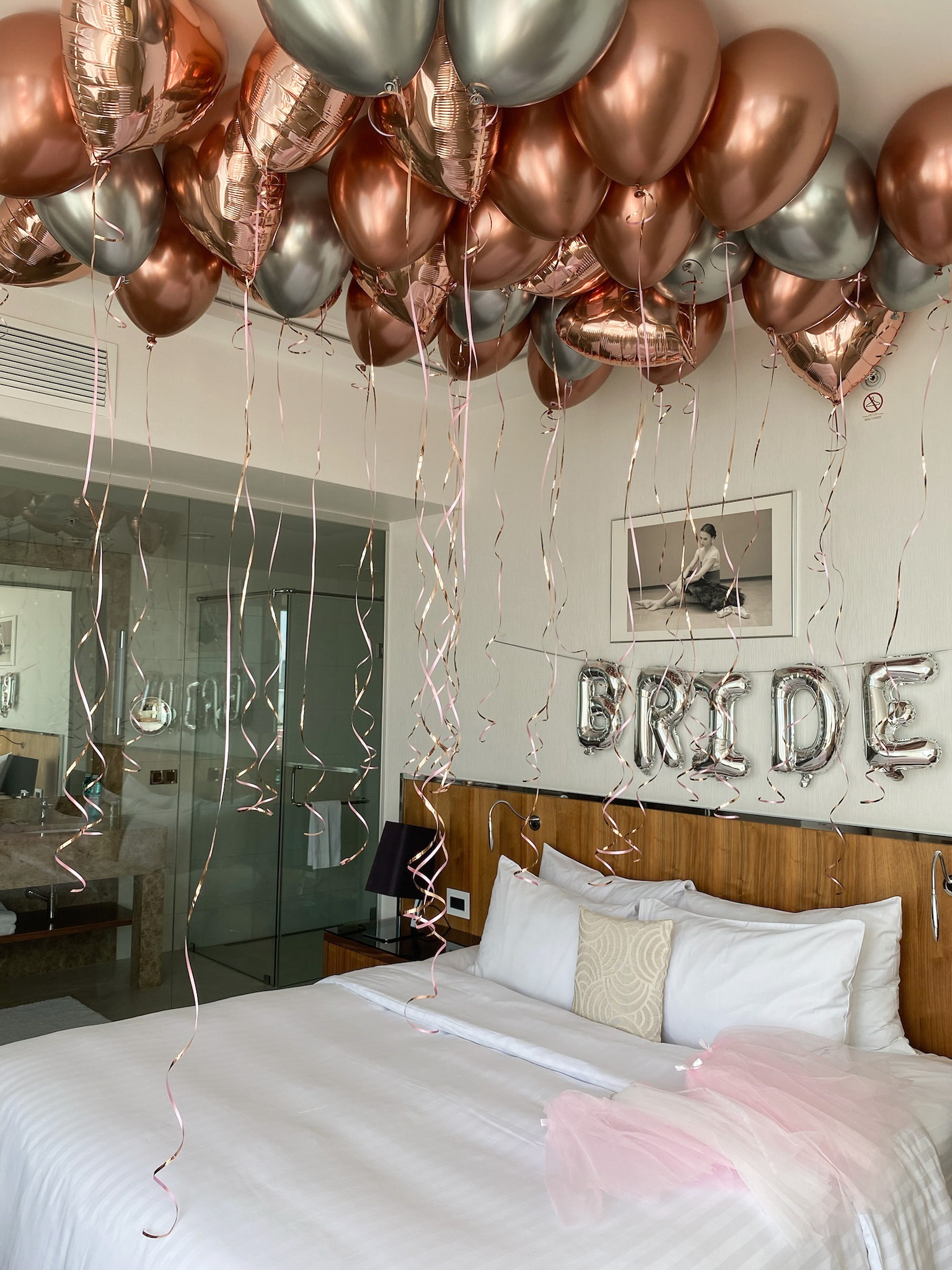 • 35 Шаров под потолок (13 хром розовое золото, 12 хром серебро, 10 сердец розовое золото)