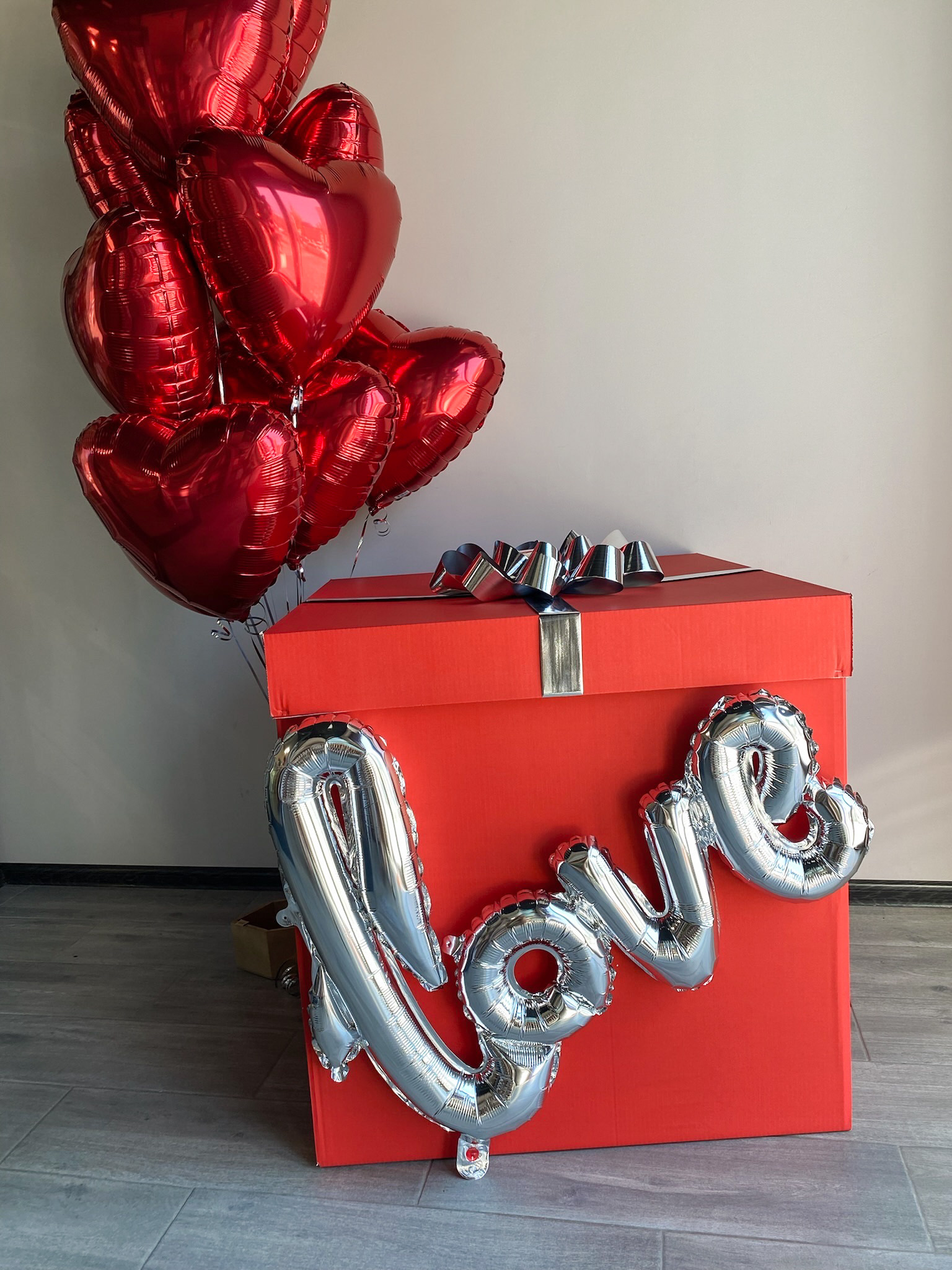 - Коробка большая с бантом и надписью