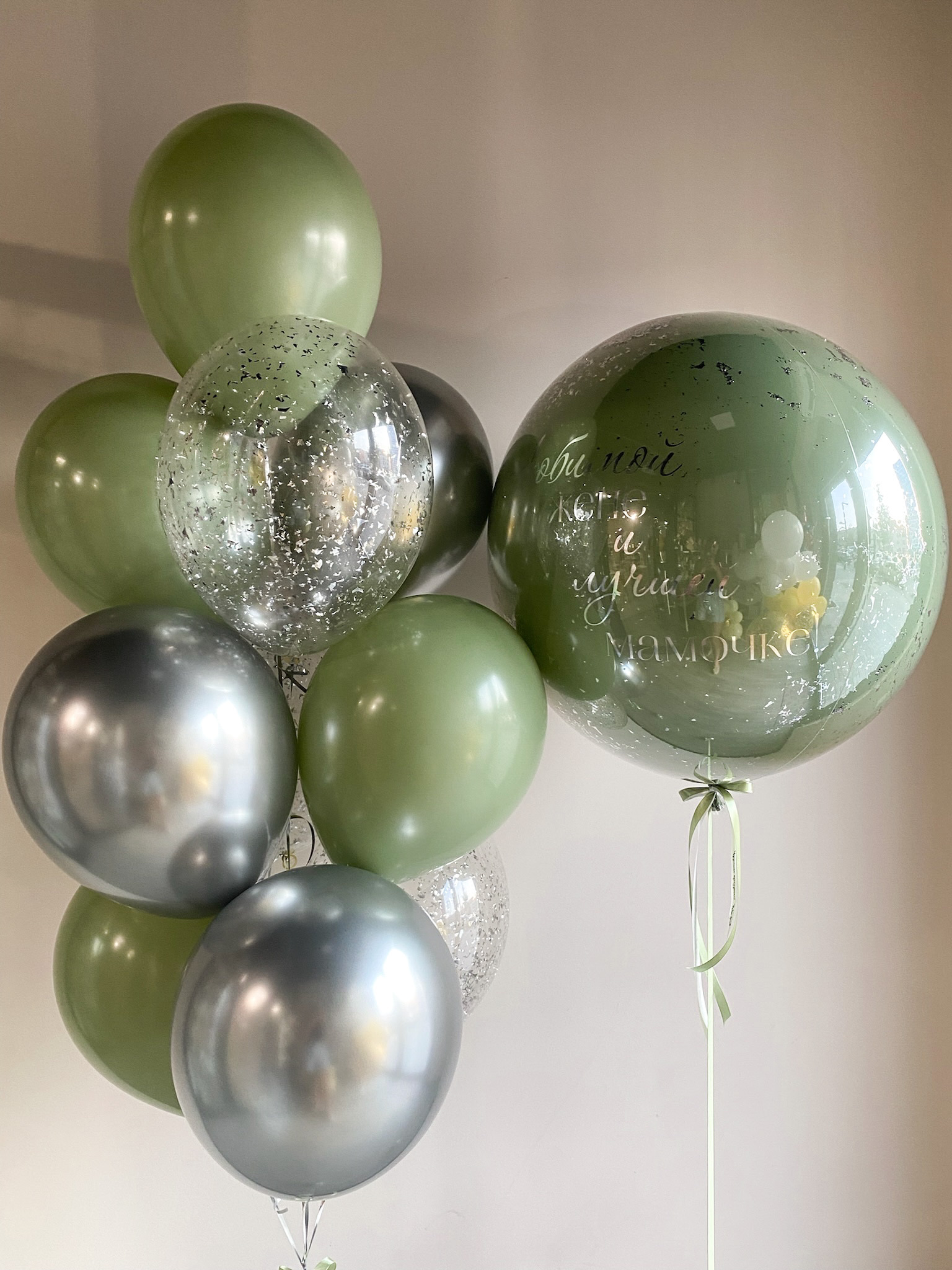 Данный набор возможен с изменением цветовой гаммы, количеством шаров, добавлением индивидуальной надписи)