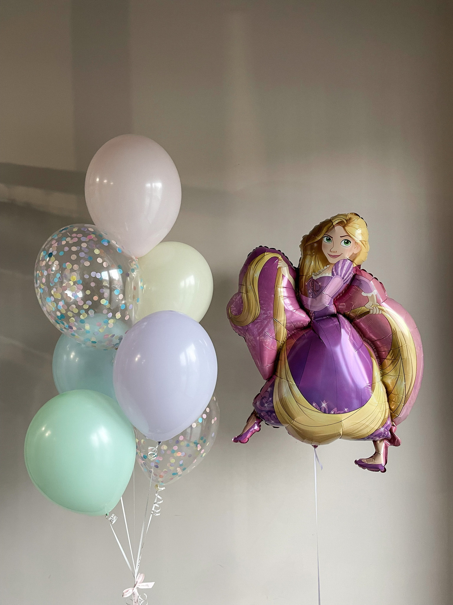 - Фонтан из 7 шаров: 2 с конфетти и 5 однотонных