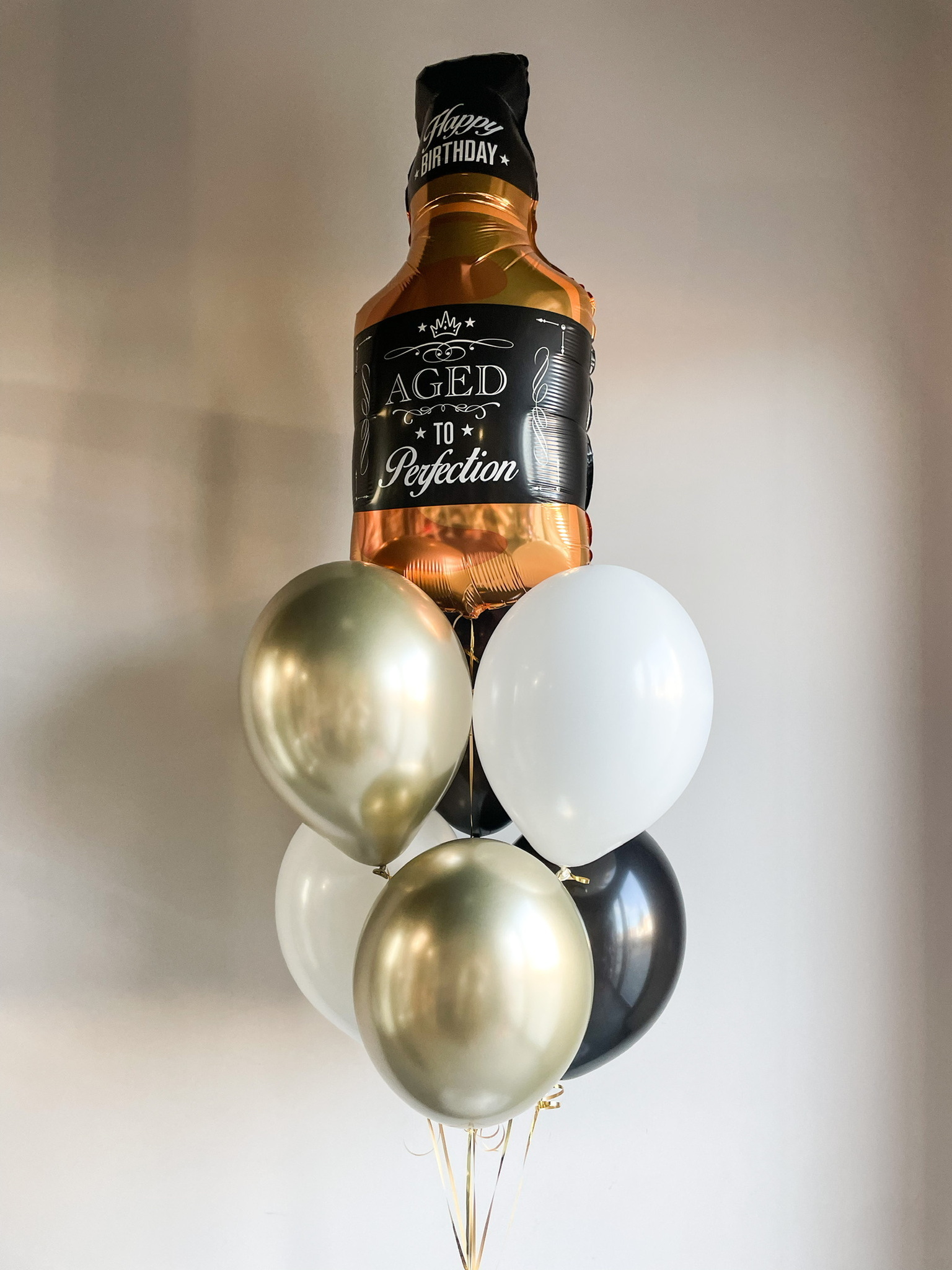 - Фонтан из 7 шаров: фигурка бутылка виски, 2 хром и 4 однотонных