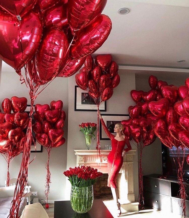 В наборе 6 охапок по 20 красных сердец.