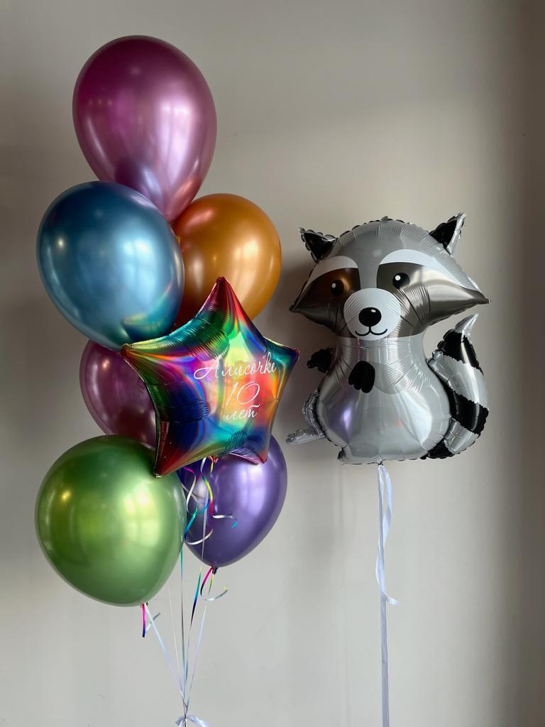 Фонтан из 6 шаров хром, звезды перламутр с надписью