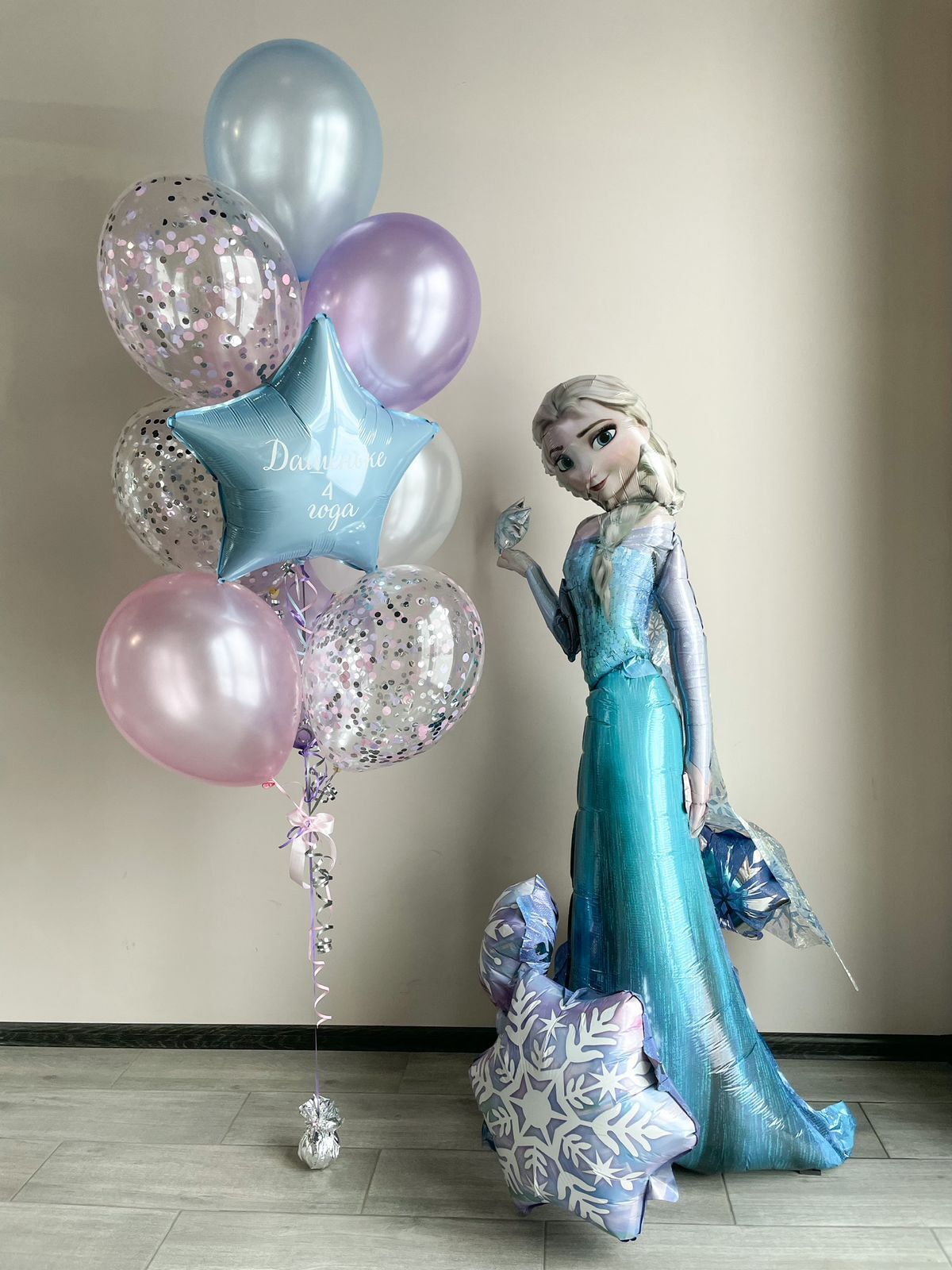 Фонтан из 10 шаров: 6 обычных, звезда с надписью, 3 с конфетти.