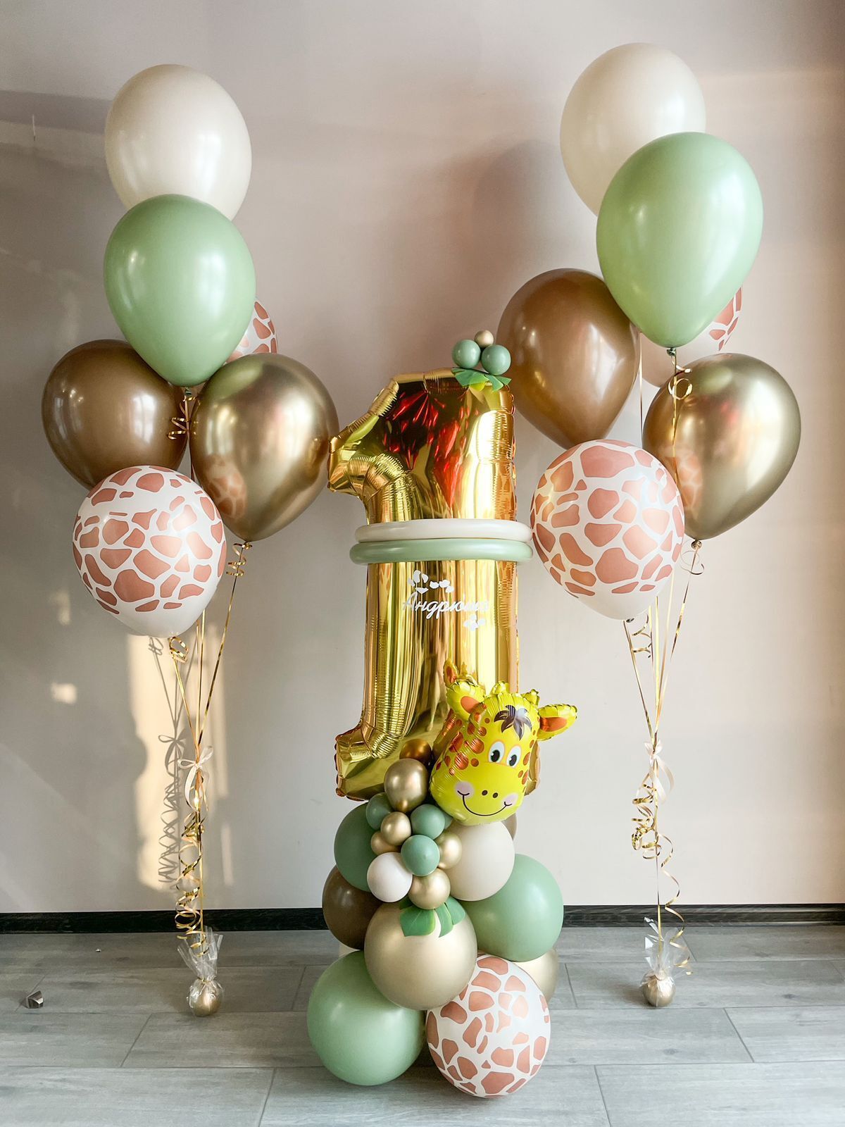 • Два фонтан по 6 Шаров (2 хром золото, 1 эвкалипт, 1 белый песок, 2 с рисунком)