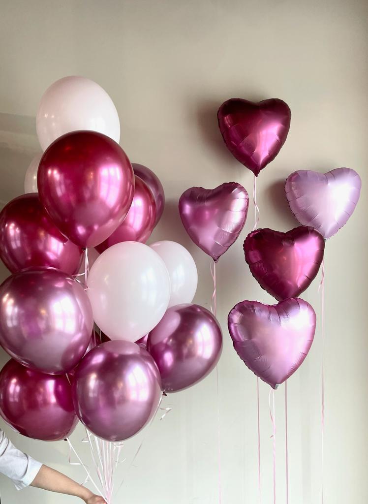 Фонтан из 5 хром гранат, 5 хром фламинго, 5 розовых.